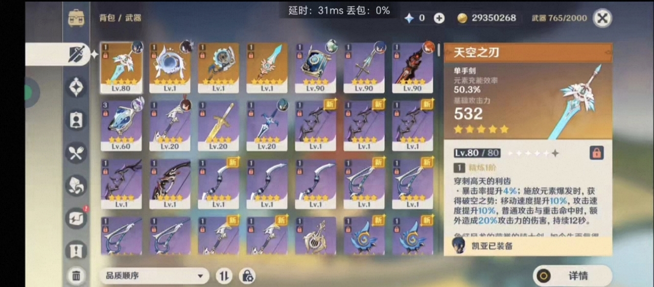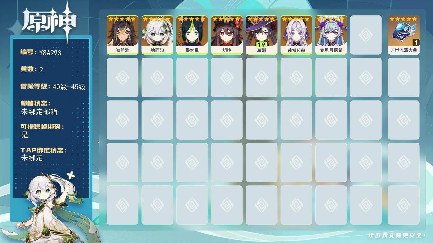 45级/9黄/女主/7个五星角色/1个五星武器/