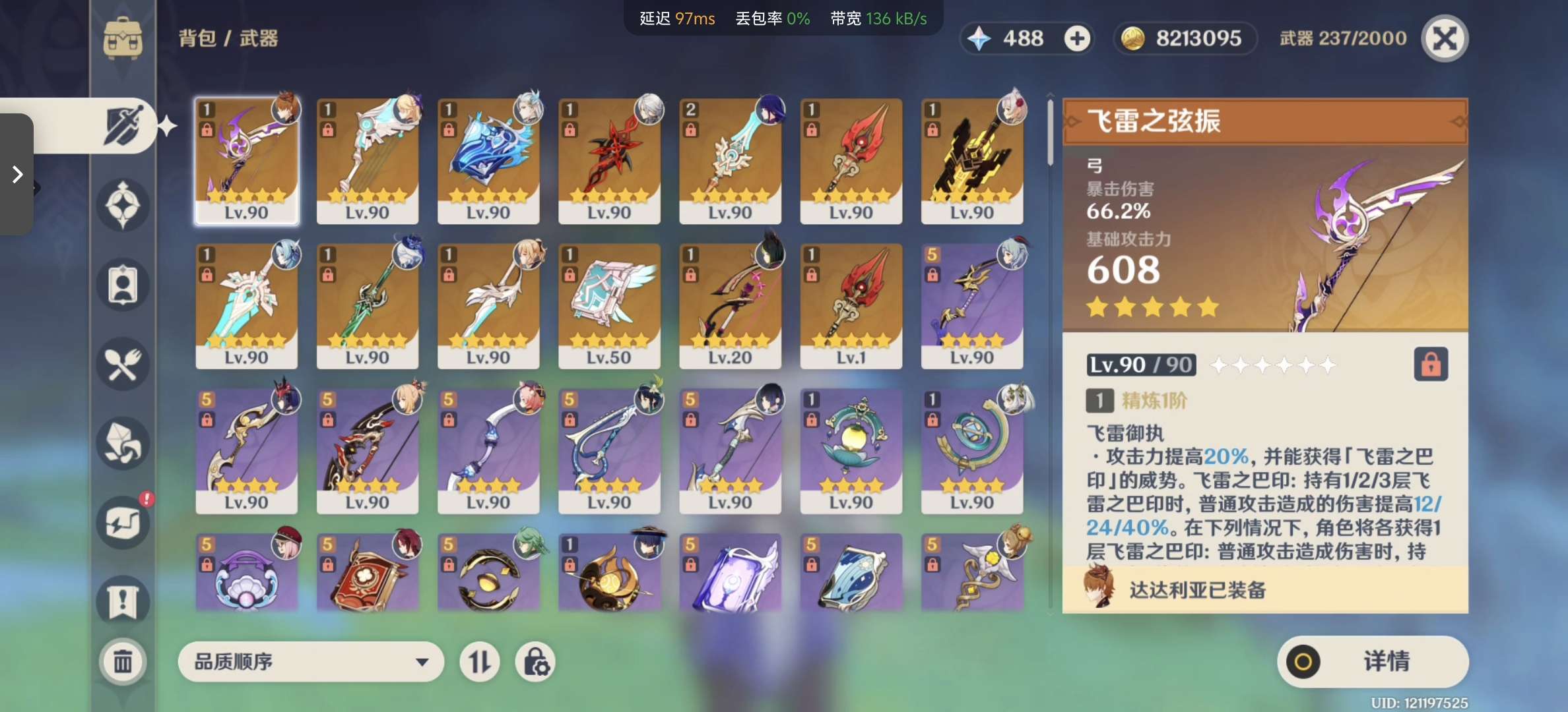 活邮【单双甘雨+专武阿莫斯之弓】送信息