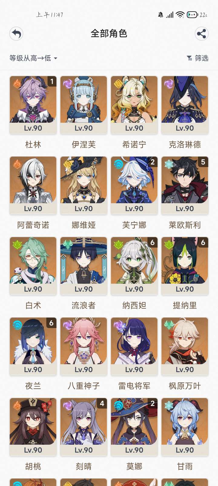 58级/24黄/女主/13个五星角色/5个五星武器/