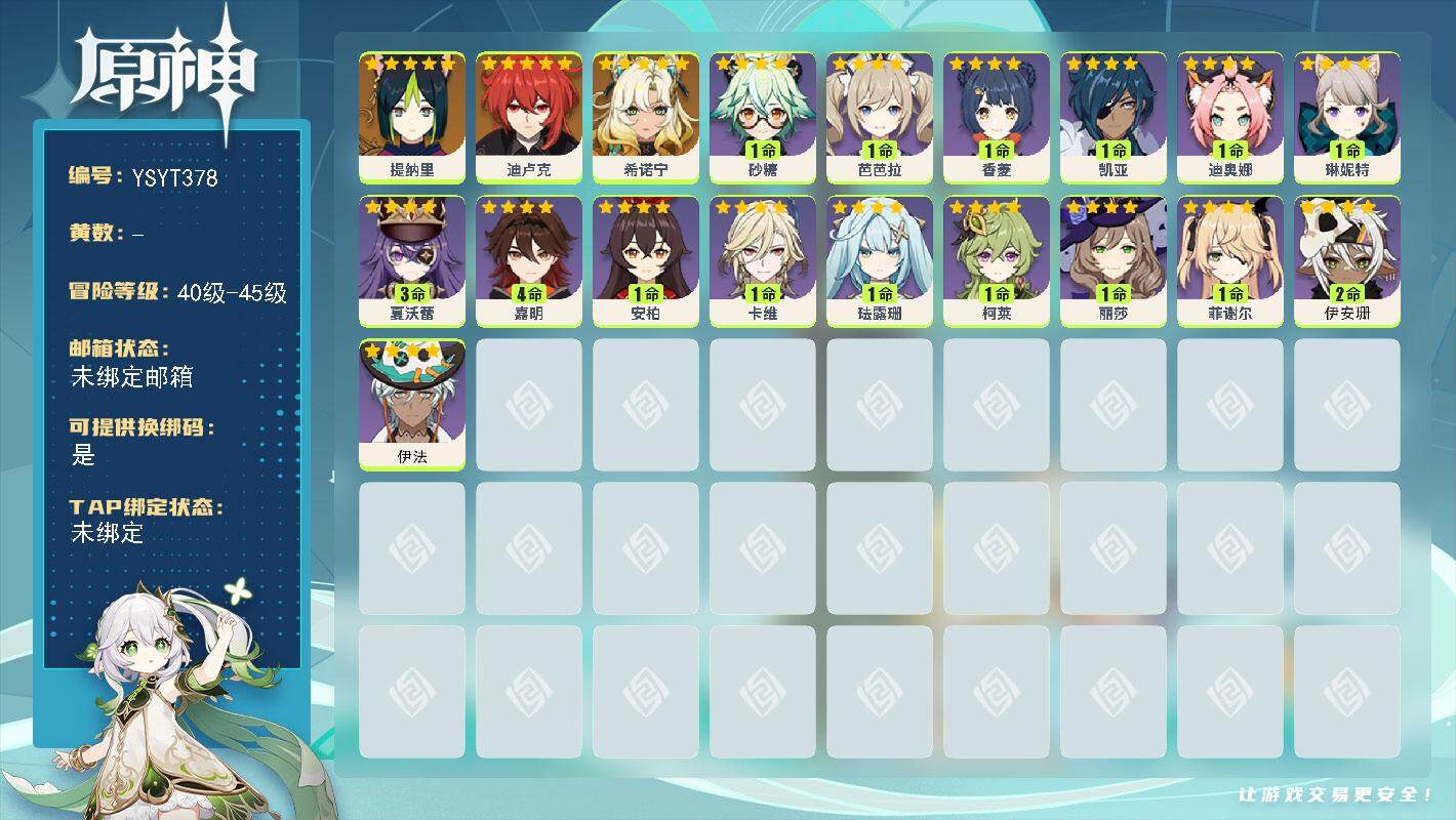⭐可改实名⭐【必带五星草神-纳西妲+随机2-3个五星】⭐5-10级纯初始⭐未绑大手机⭐未开深渊⭐活邮