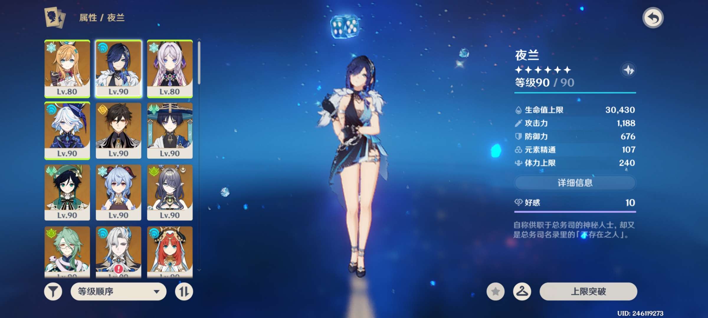 45级/女主/4个五星角色/希诺宁/提纳里/迪卢克/0命伊法
