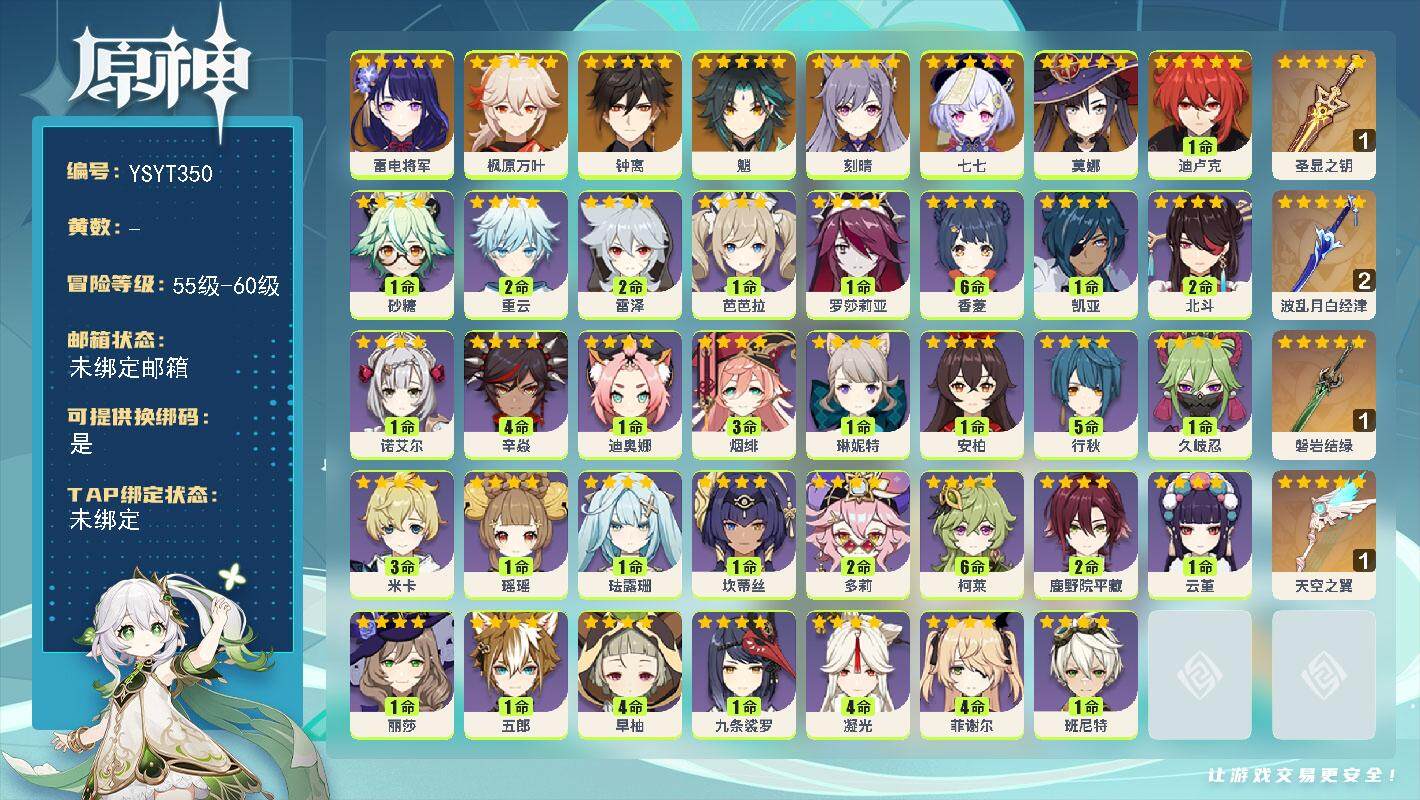 ⭐必带五星【1命尤菈】⭐随机附赠其他高级角色及武器⭐送改密信息⭐可秒绑手机,可改密码⭐