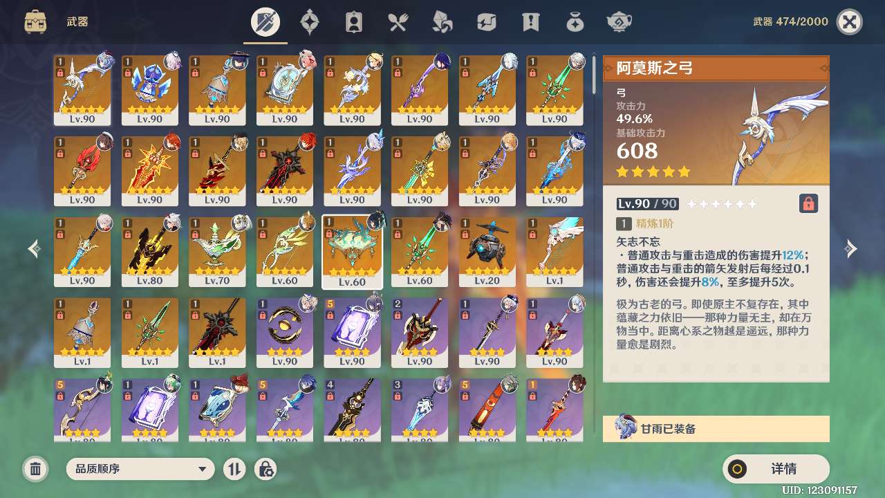 59级/26黄/女主/17个五星角色/4个五星武器/