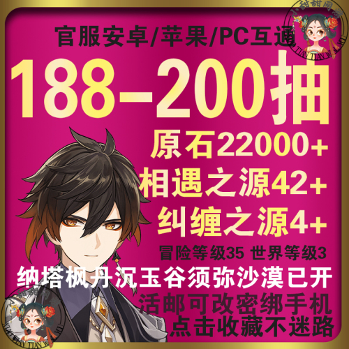 【官服双端直登】188-200抽22000原石42相遇4纠缠/等级35/游戏邮箱可改密改手机