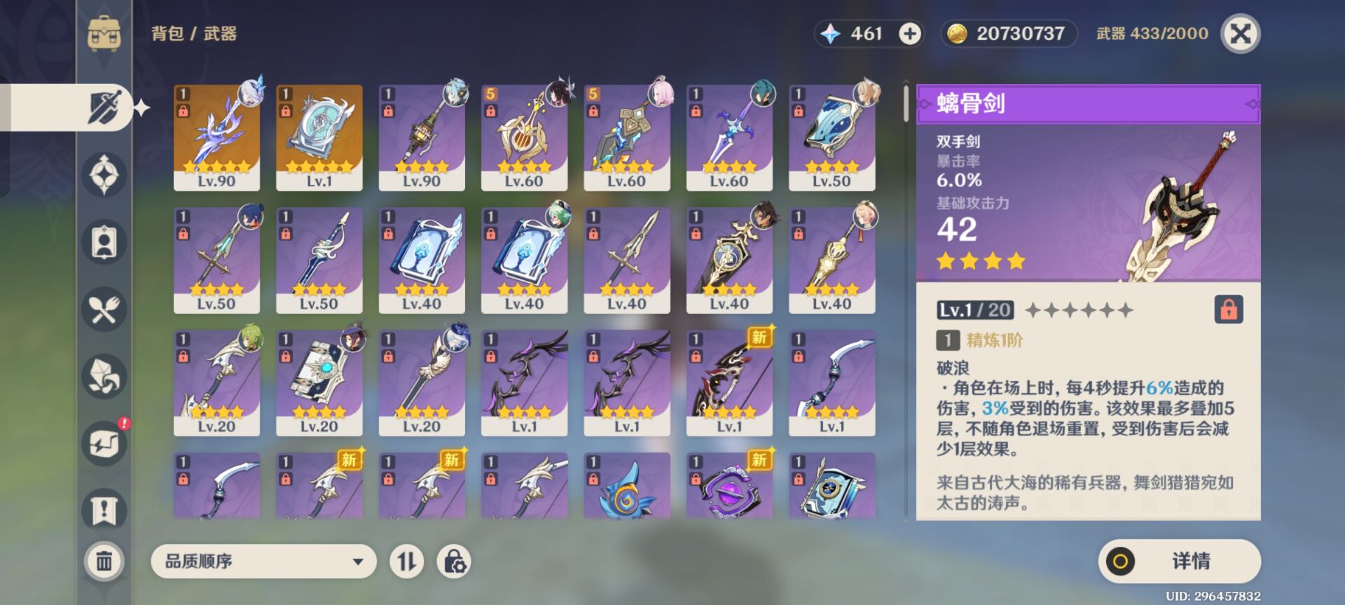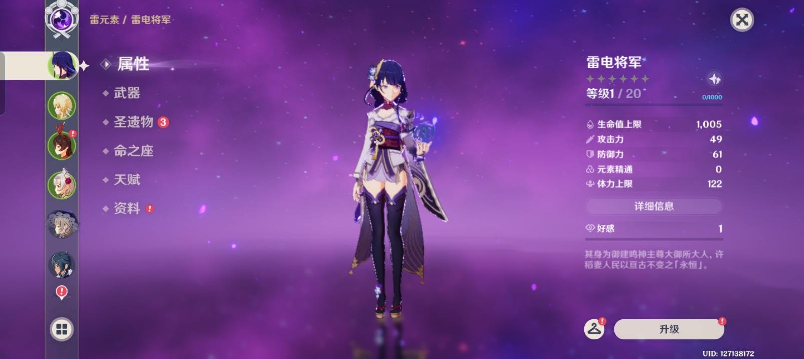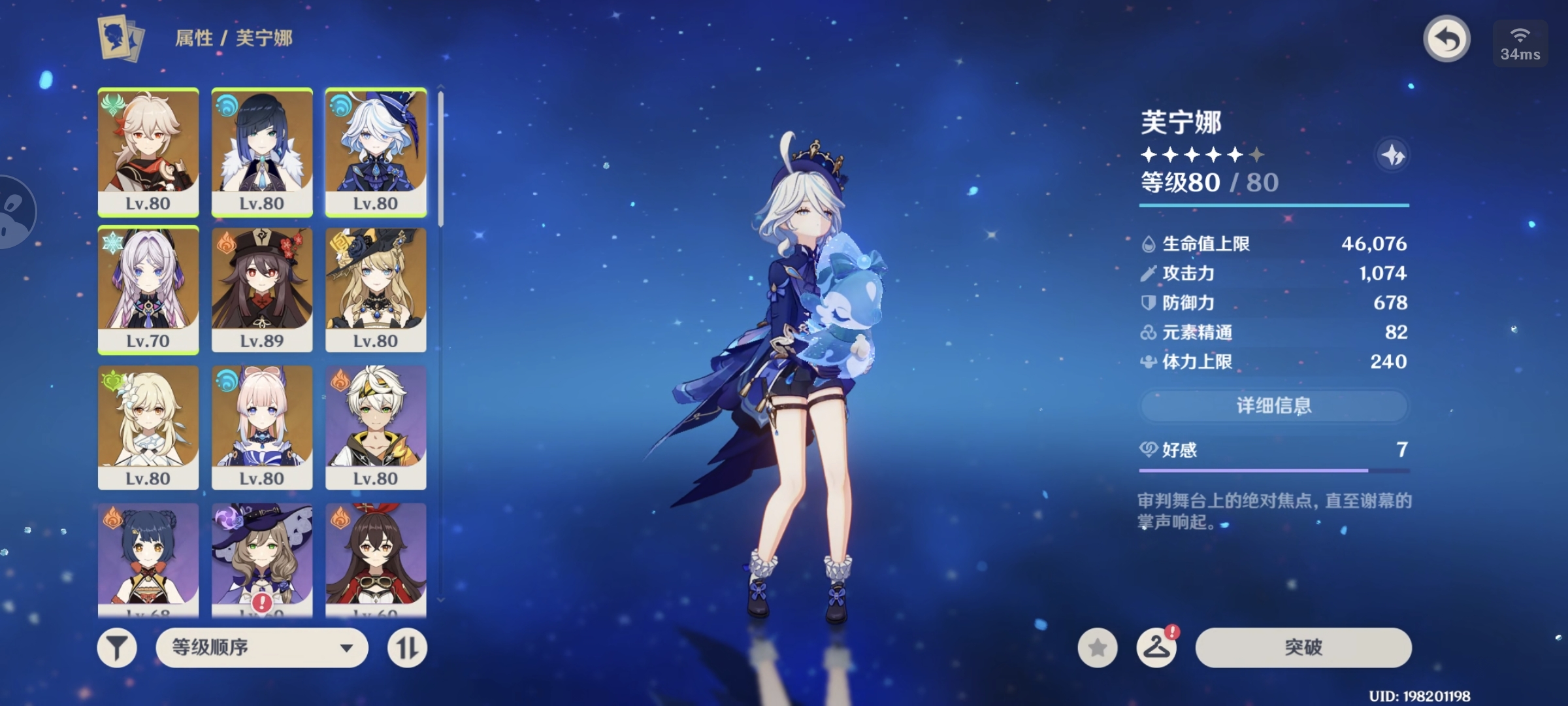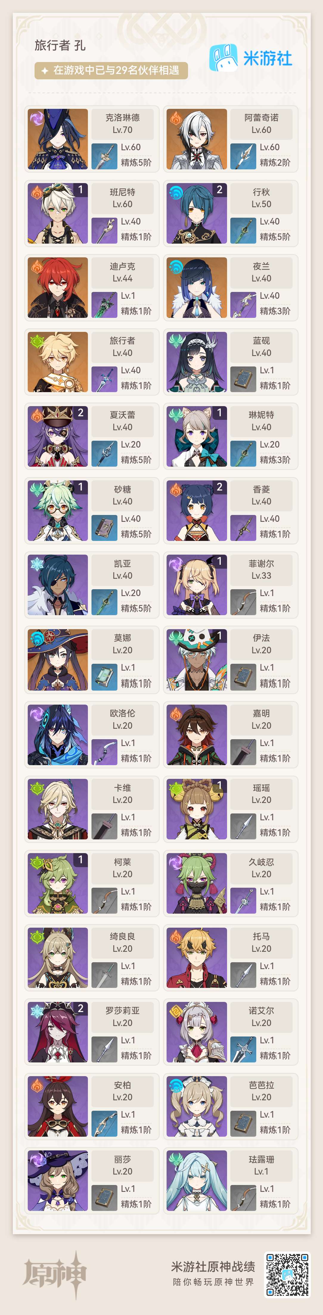 60级/46黄/女主/21个五星角色/6个五星武器