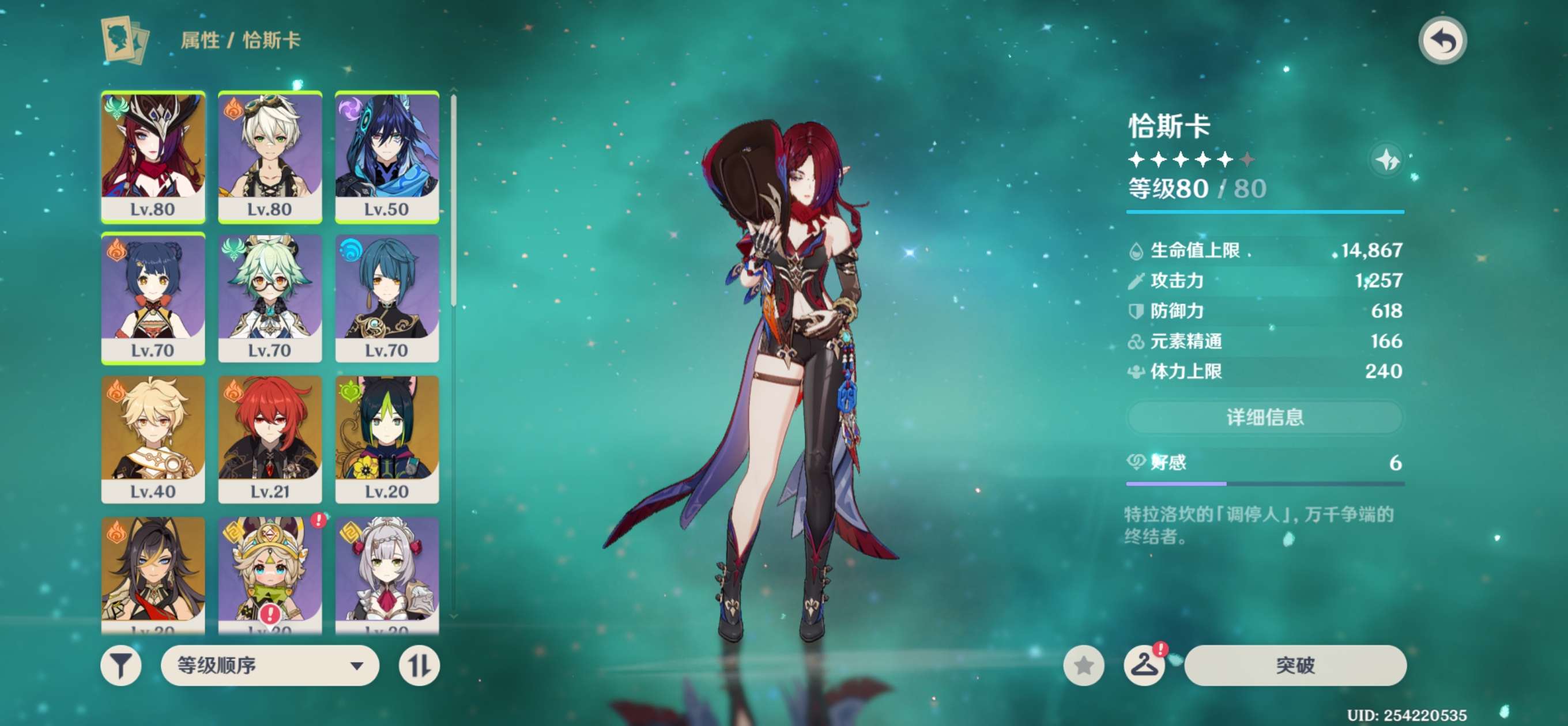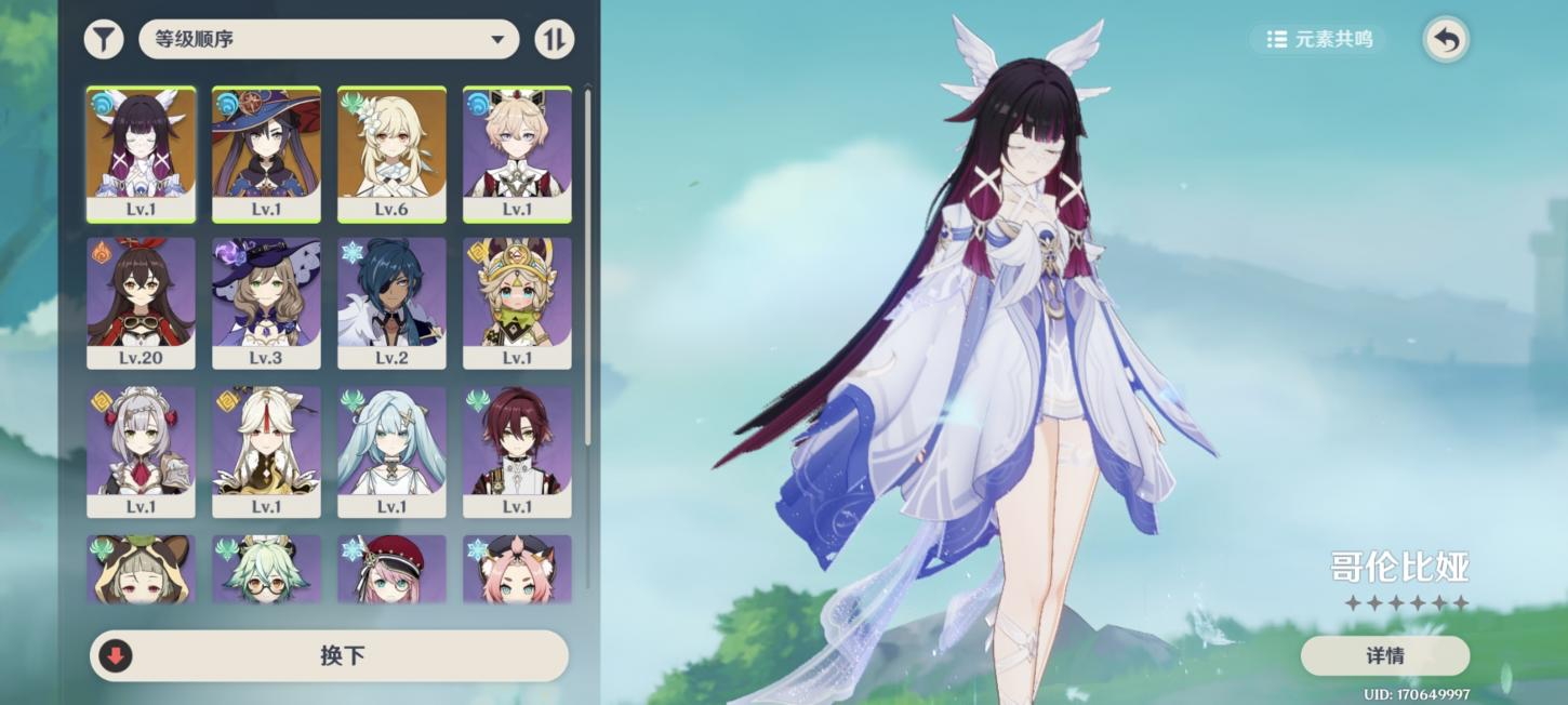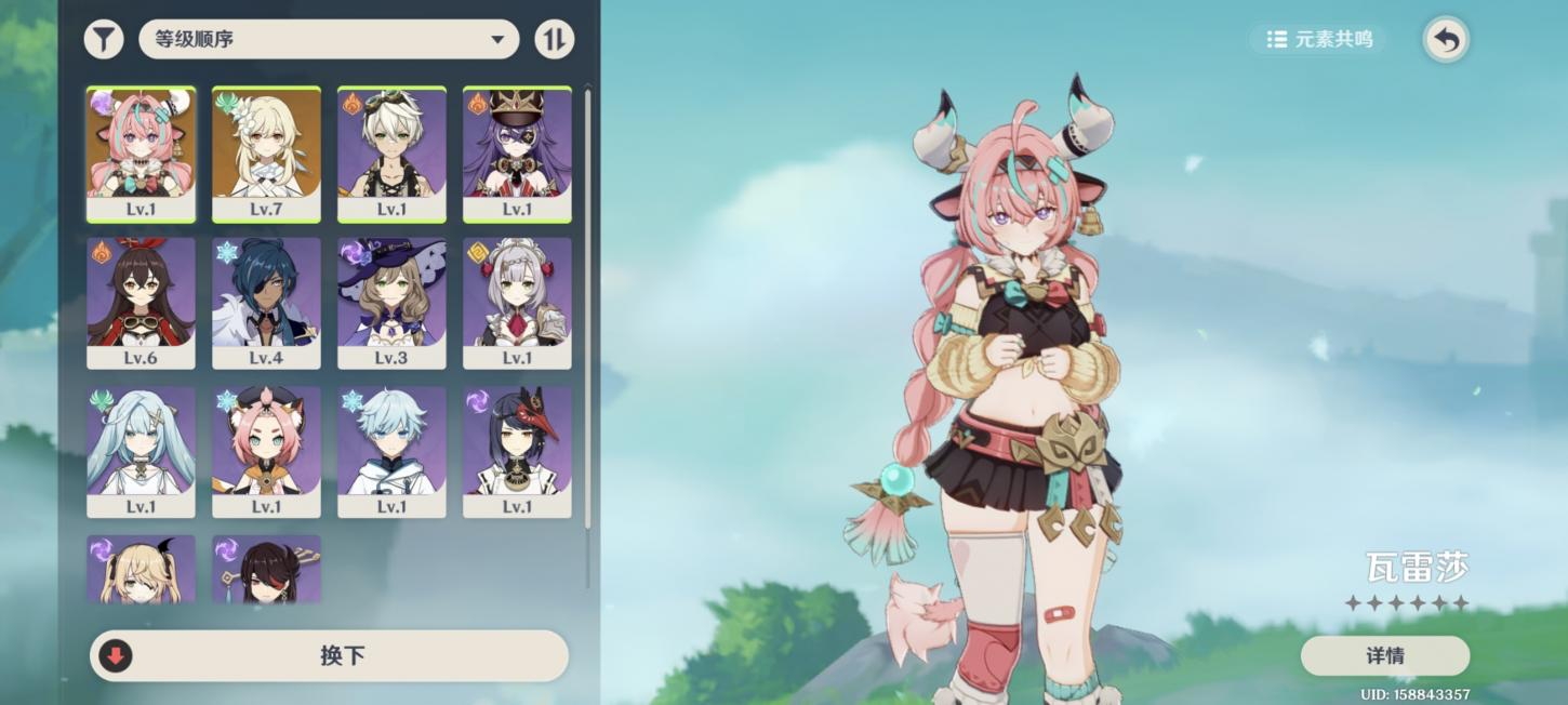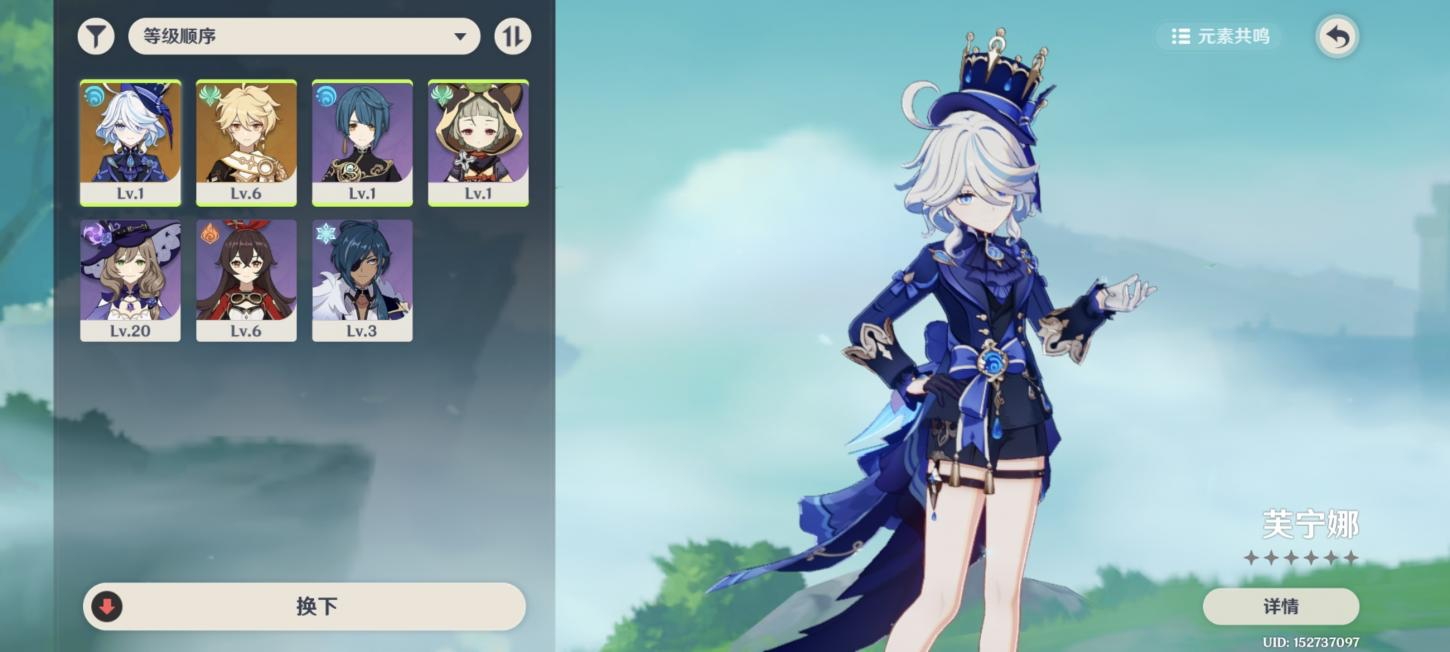 57级/18黄/女主/7个五星角色/3个五星武器/恰斯卡/芙宁娜/