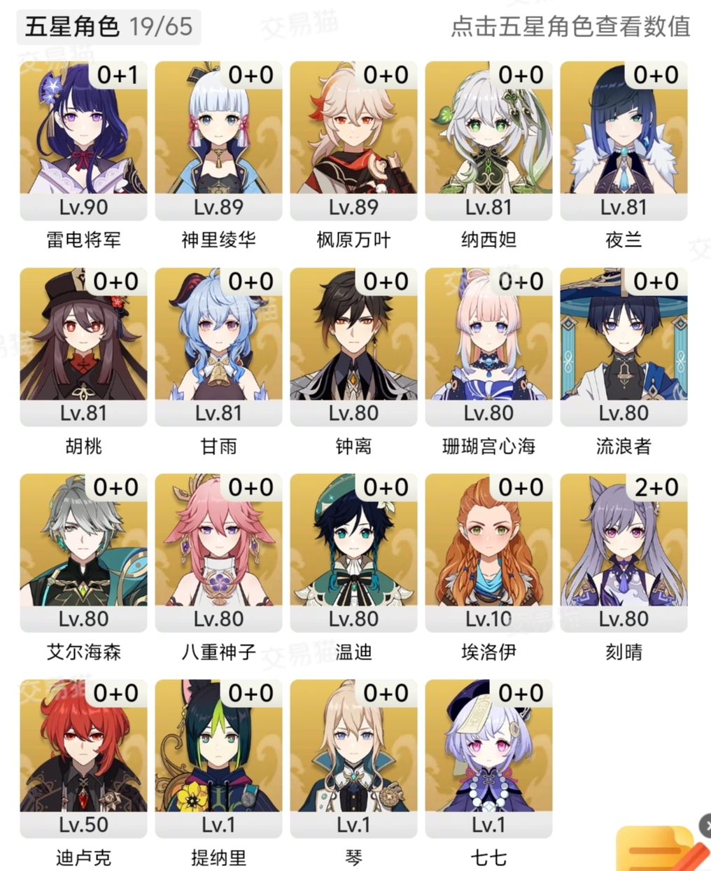 米哈游连体号,原神17金都在图里,连体崩铁78金,绝区零11金妄想天使三个都有,平时晚上9点以后有空