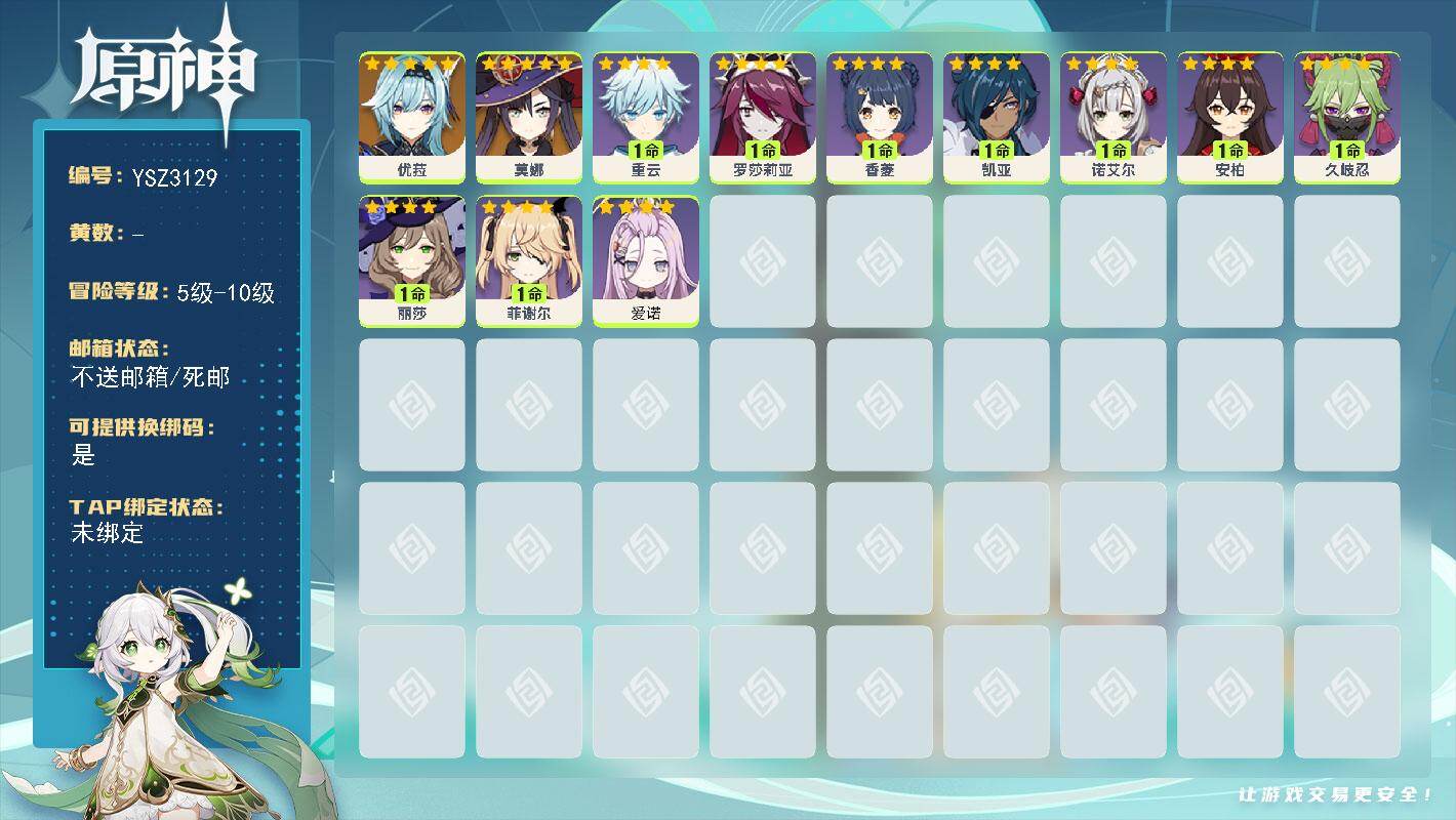 (双改)原神官服夜兰初始号等级5-10送网易三无邮箱