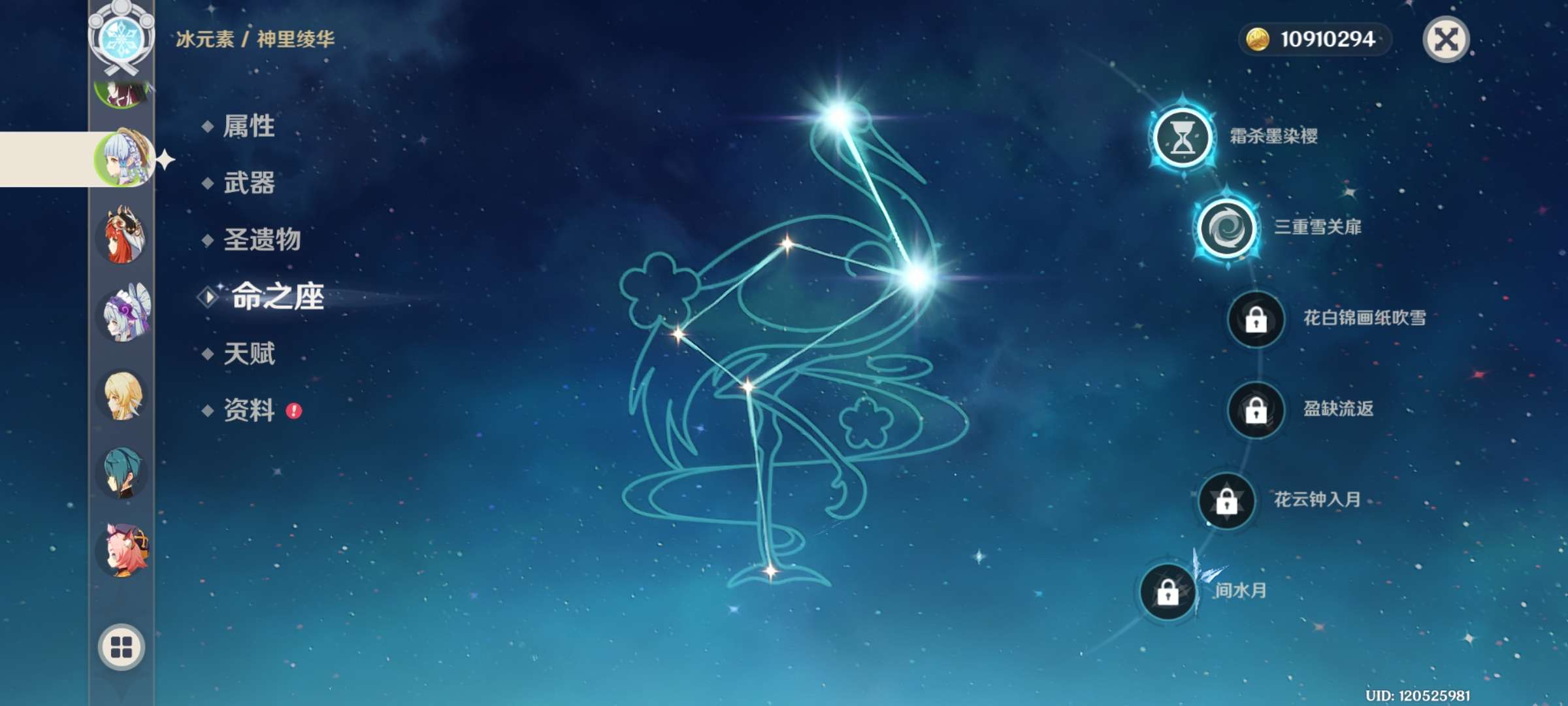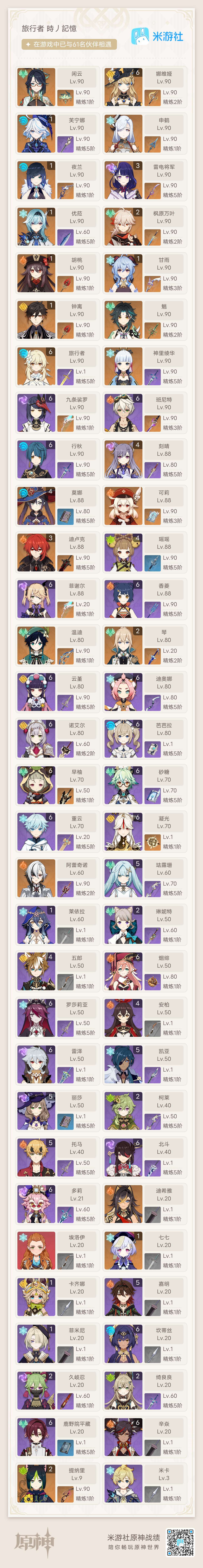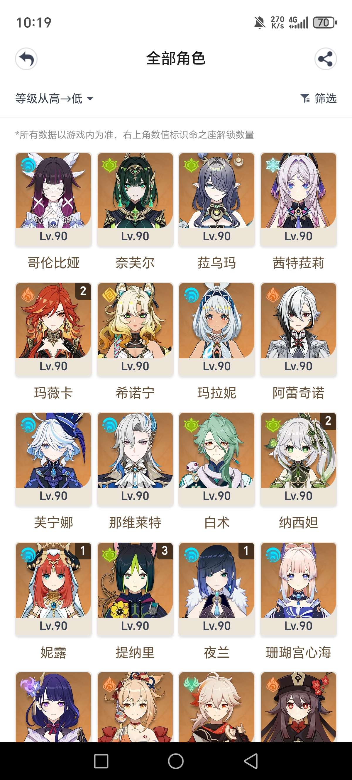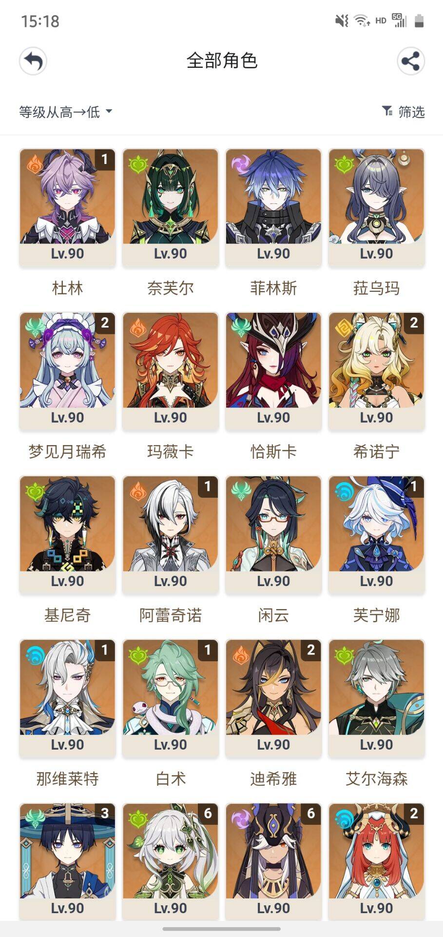 49级/16黄/女主/14个五星角色/纳西妲/神里绫华/1命刻晴