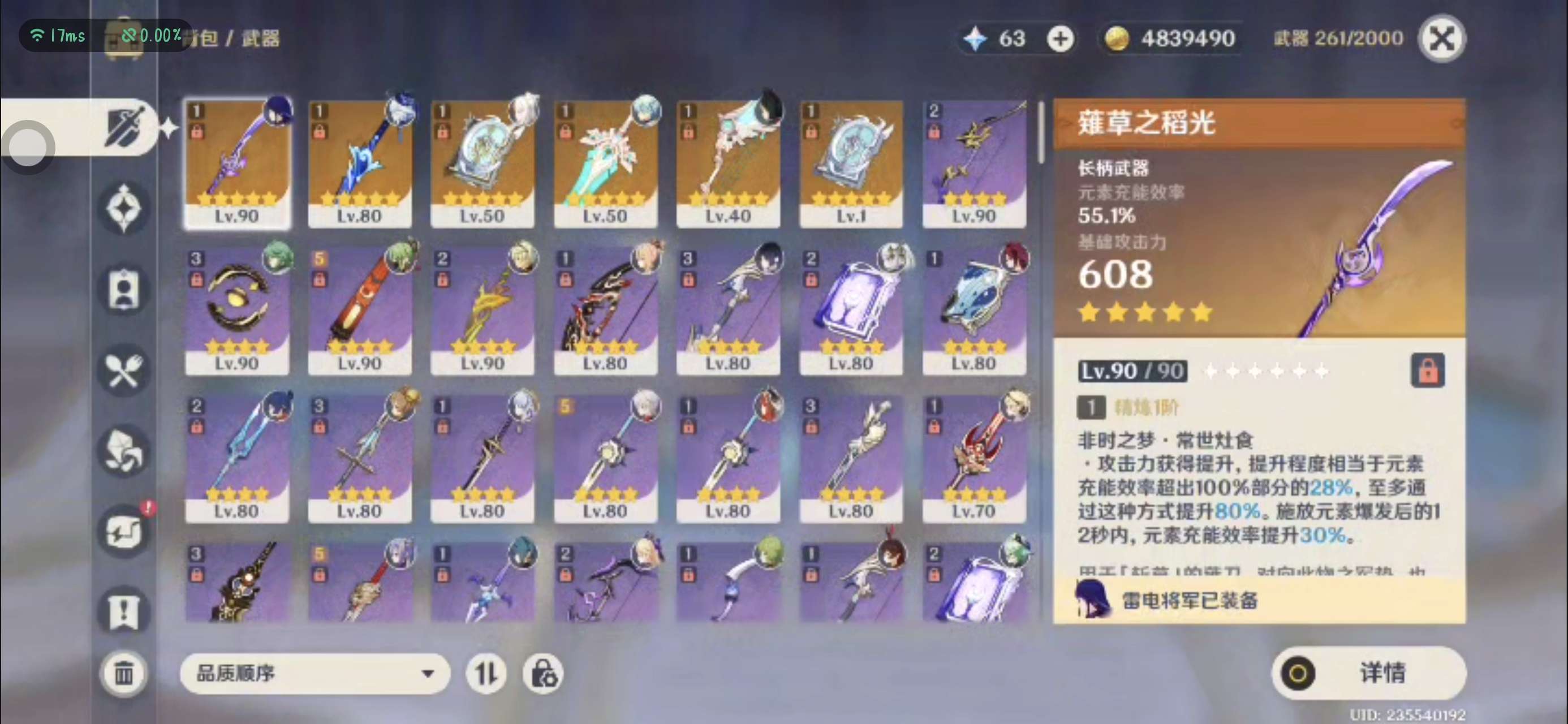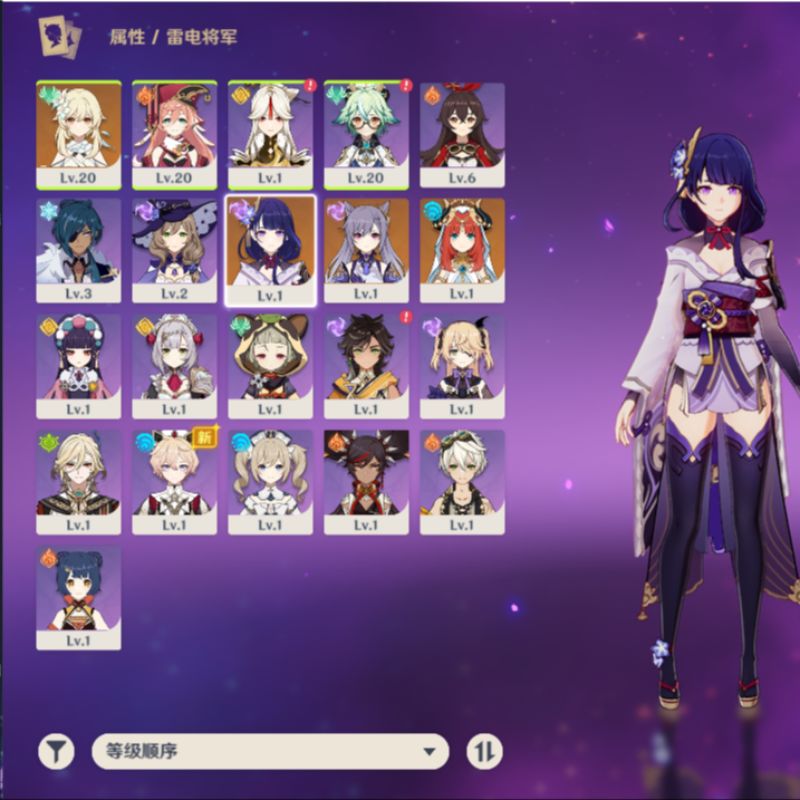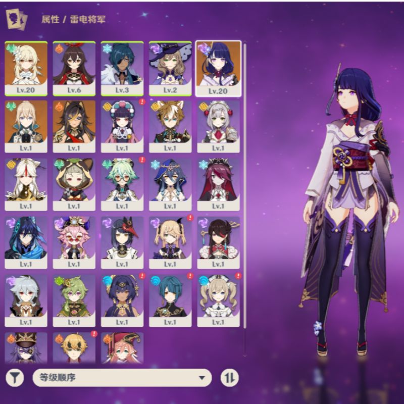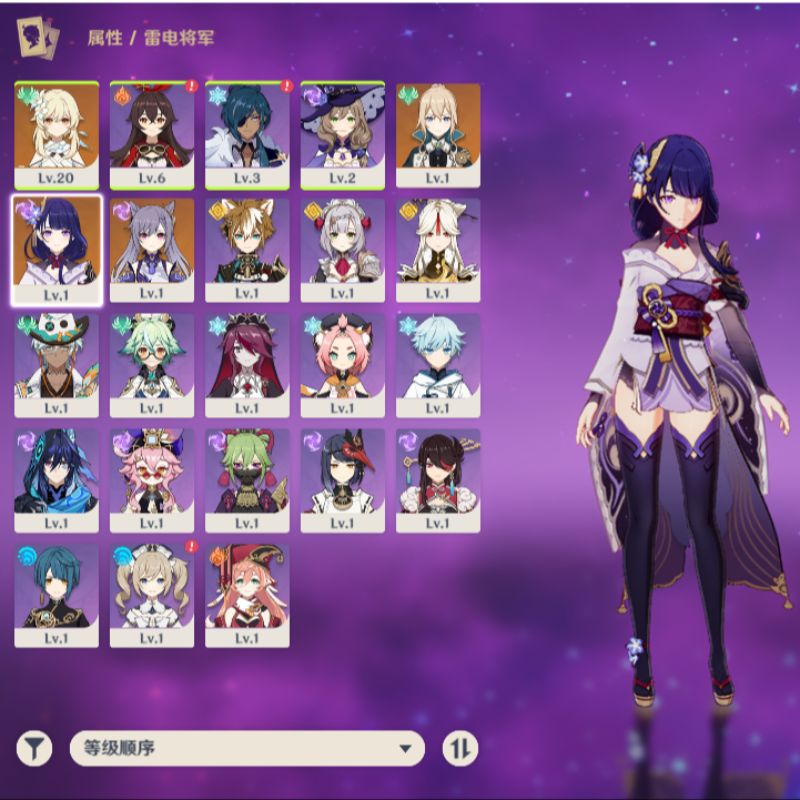 58级/33黄/女主/19个五星角色/8个五星武器/2命雷电将军/