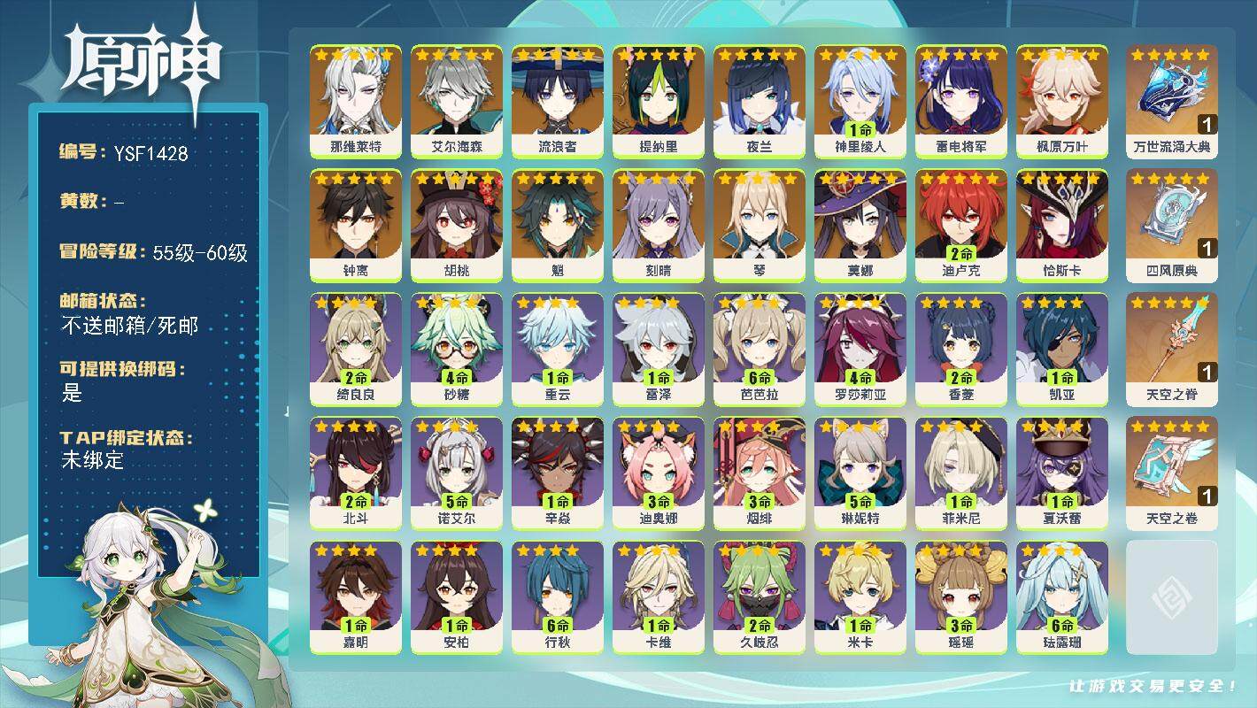 56级/女主/11个五星角色/迪希雅/2命夜兰