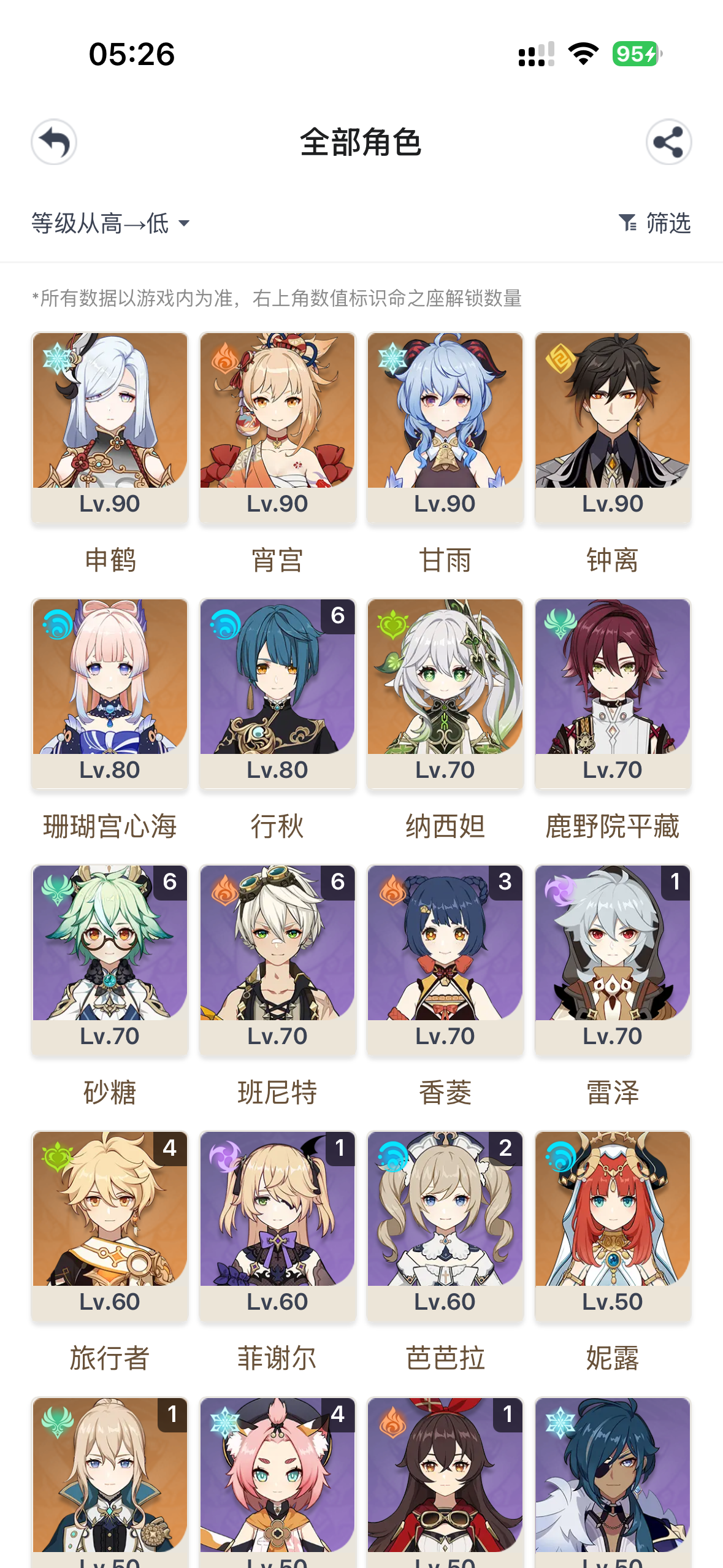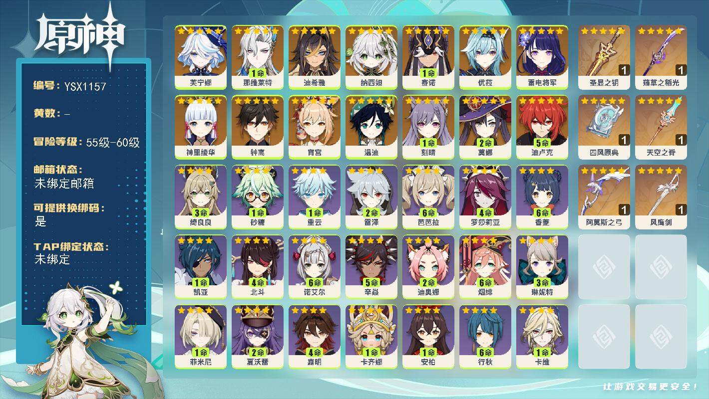 58级/男主/15个五星角色/芙宁娜/1命那维莱特