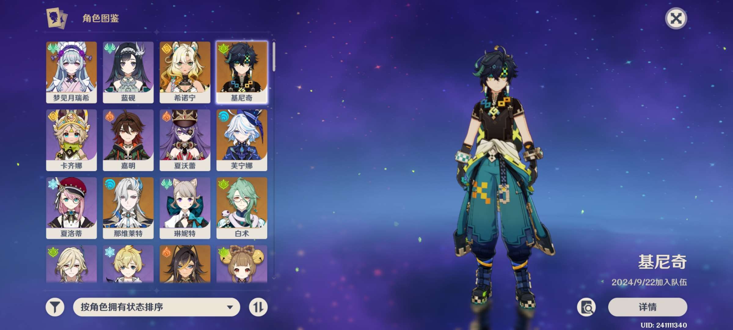 120多黄,up池垫了20多发,大保底,纳塔版本到现在除了基尼奇其他都有,有月卡,全角色差8