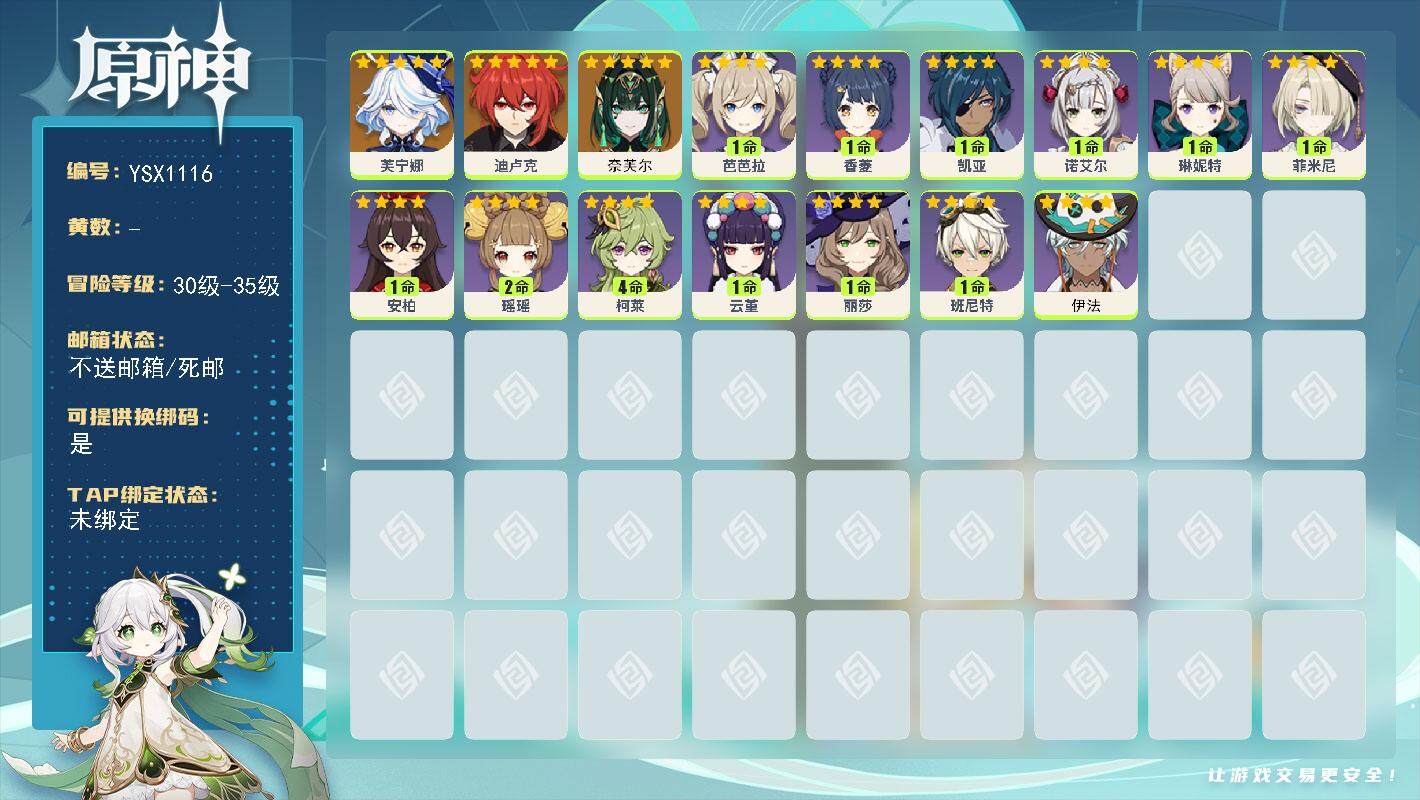 退游号。角色全部大毕业,雷电将军二命。便宜出了。号贩子想二位数收购的底线是。三位数