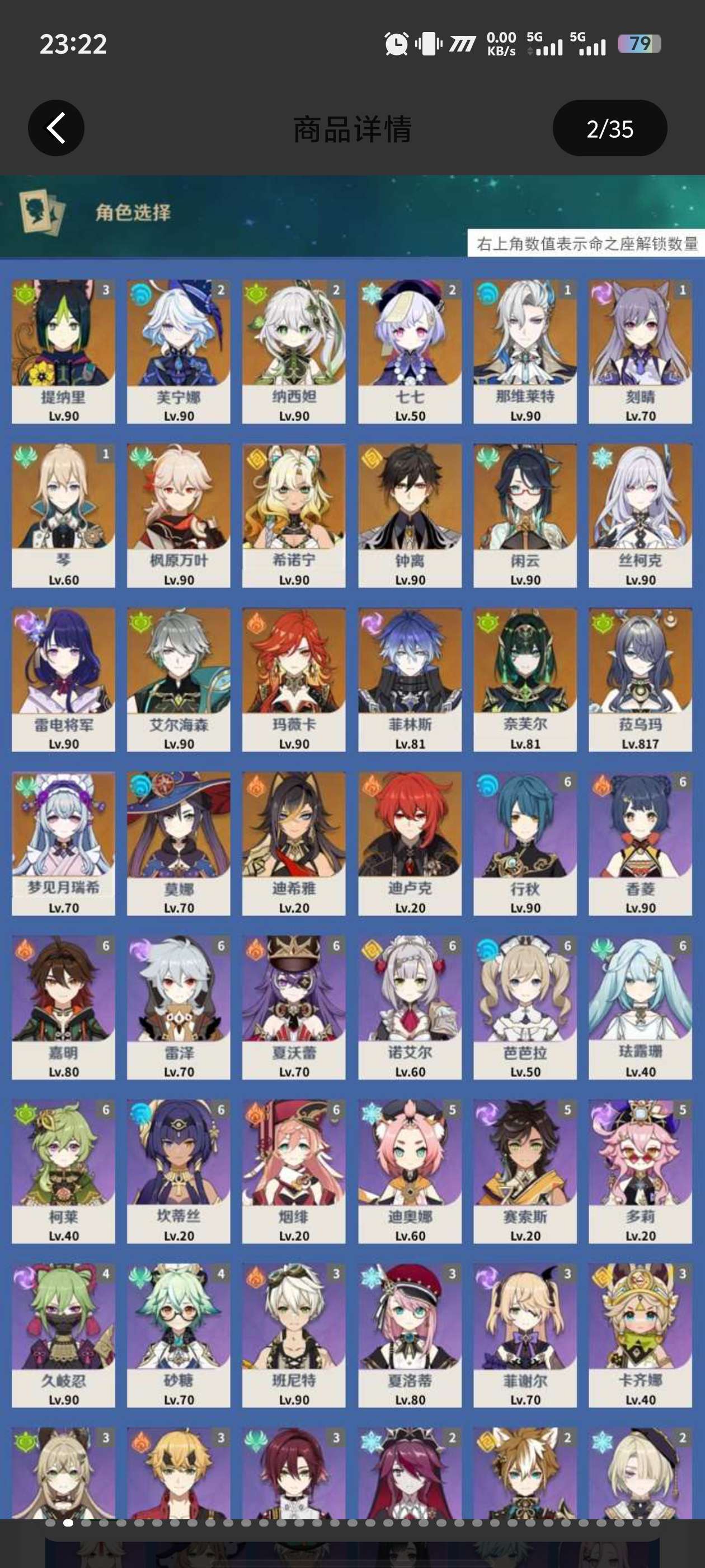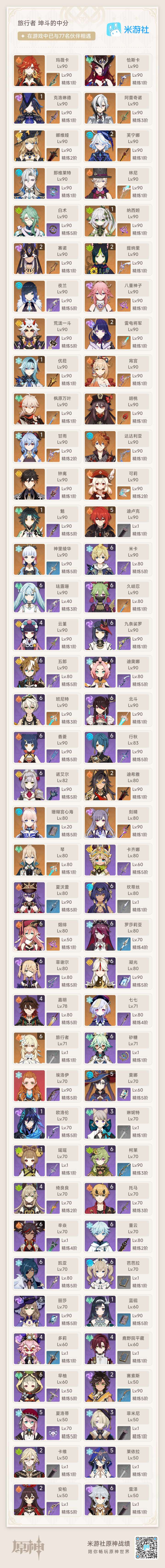 56级/男主/12个五星角色/纳西妲/