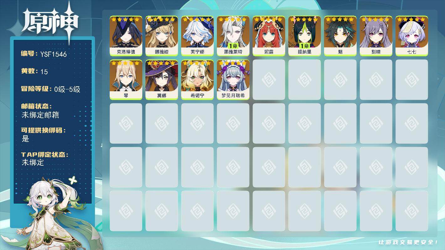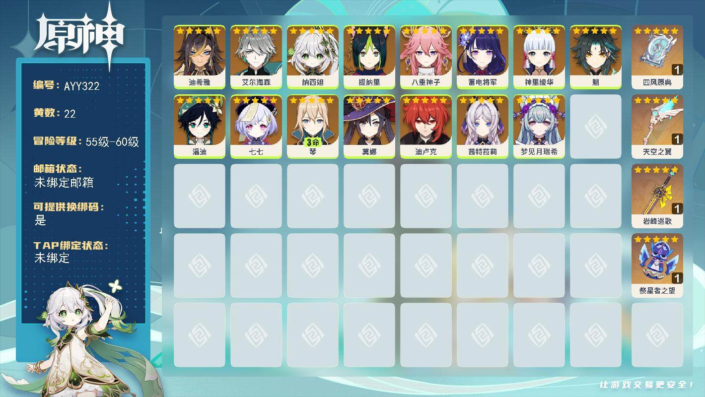 56级/22黄/男主/15个五星角色/4个五星武器0命迪希雅,0命艾尔海森,