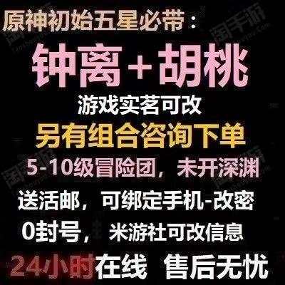 【游戏实名可改】5-10级★胡桃+钟离+提纳里★可绑手机改密活邮【官服通用】
