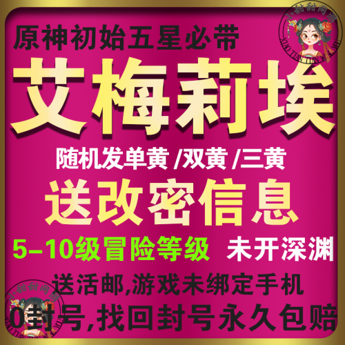 【艾梅莉埃】+随机五星5-10级冒险等级/深渊未开/送改密信息,活邮可绑手机可改密