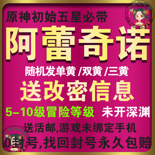 【阿蕾奇诺】仆人5-10级冒险等级/深渊未开/送改密信息,活邮可绑手机可改密