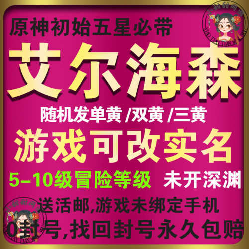 【艾尔海森】【游戏可改实名】5-10级冒险,深渊未开,可绑手机可改密