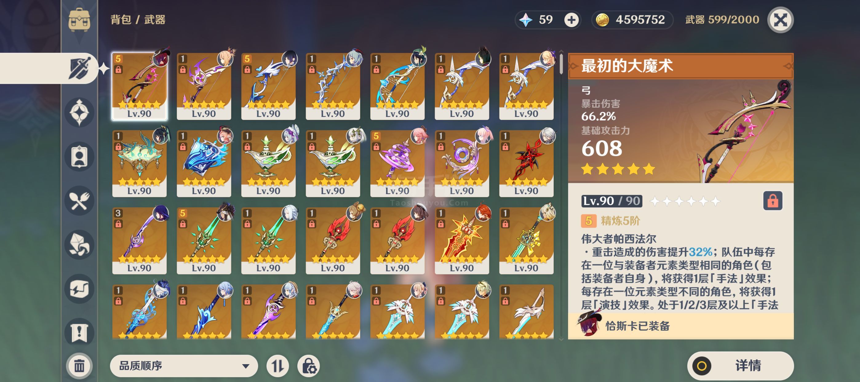 五星角色多核心角色都有专武自带六十抽,想买的来,诚心出售。