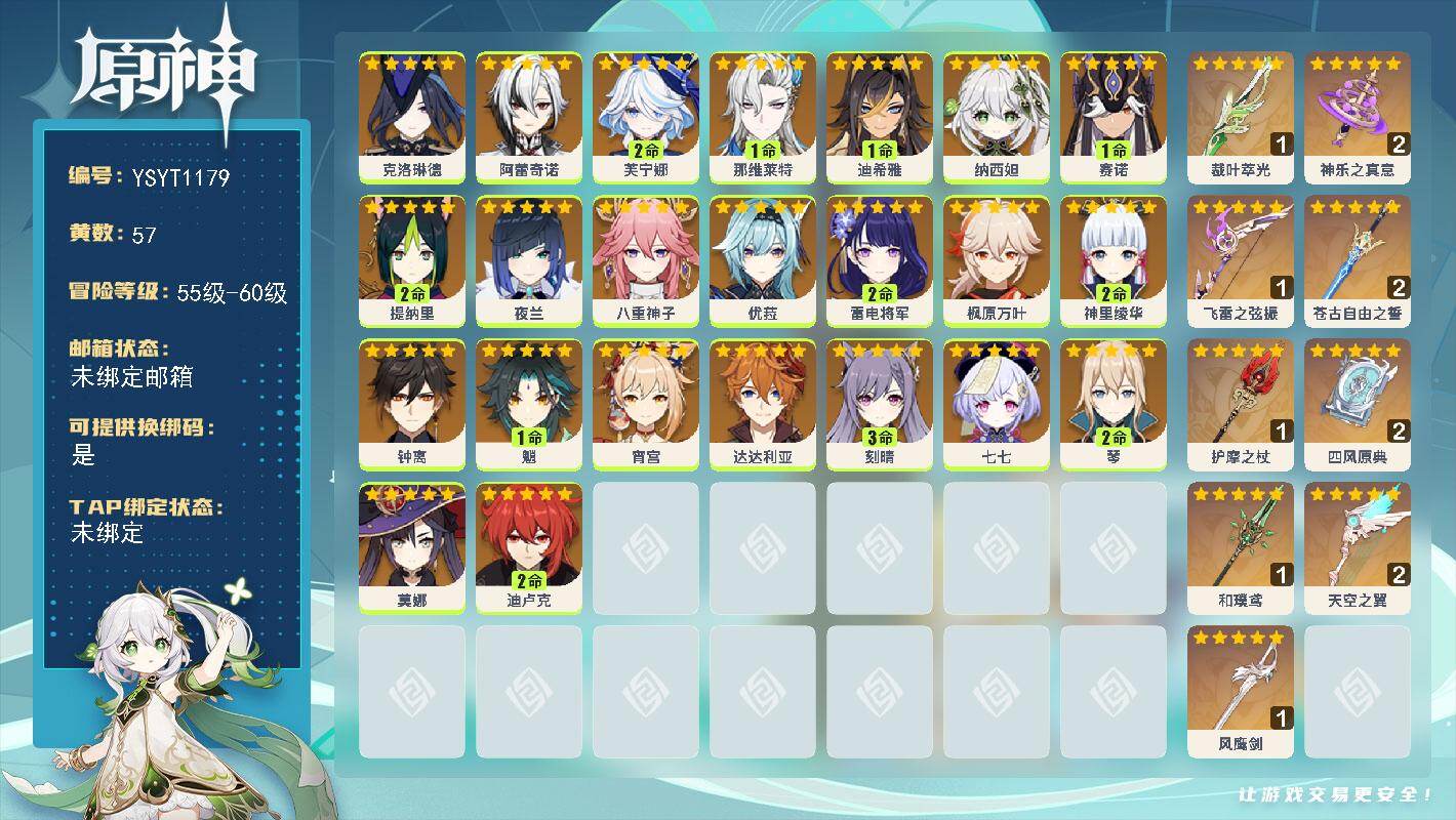 【YSYT1179】59级/57黄/女主/23个五星角色/11个五星武器/2命