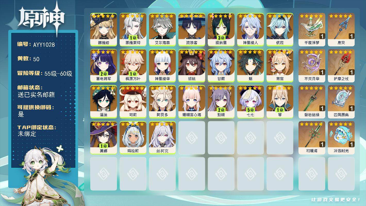 【5-19级初始】★必带那维莱特+枫原万叶★可绑手机改密活邮带信息【官服通用】