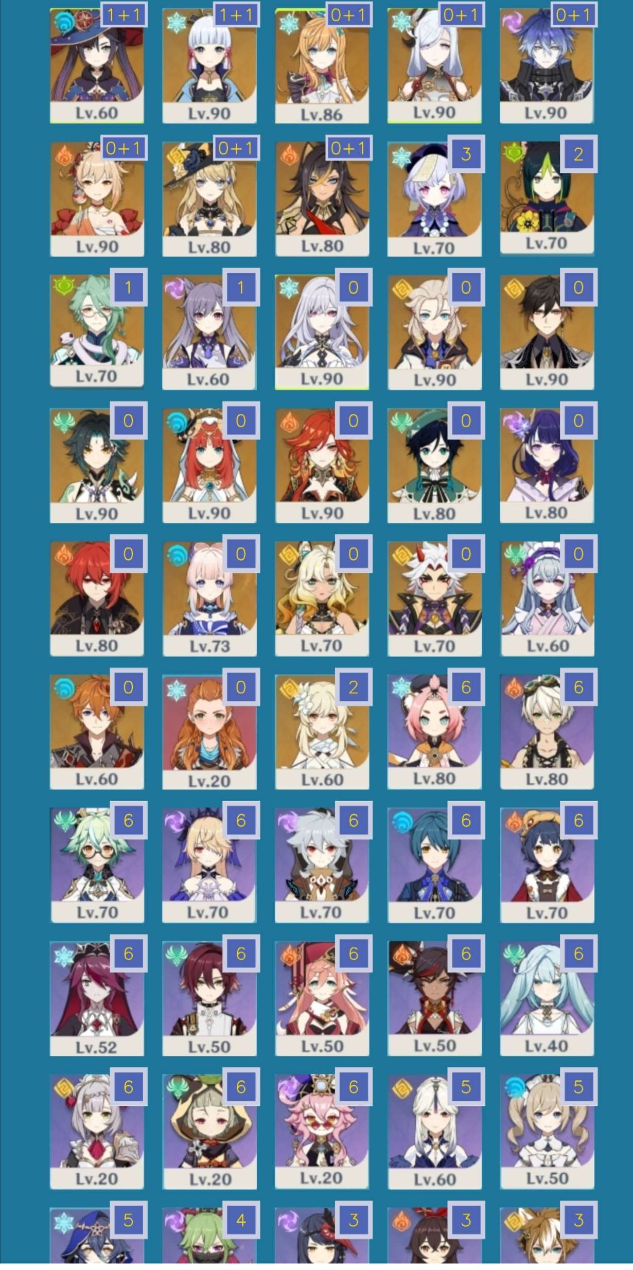 59级/36黄/男主/22个五星角色/8个五星武器0命克洛琳德,0命迪希雅,