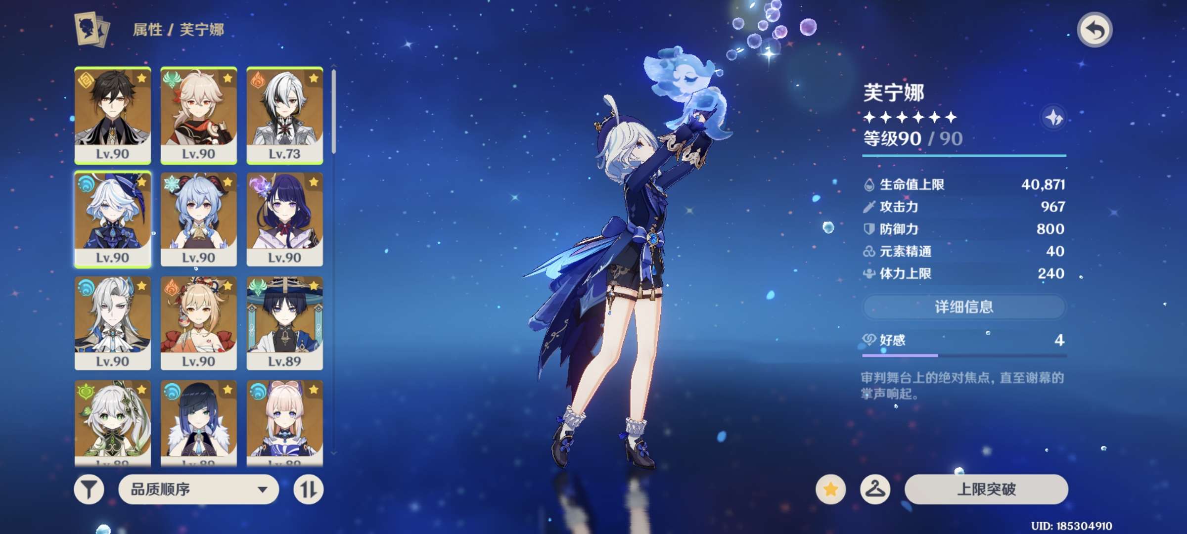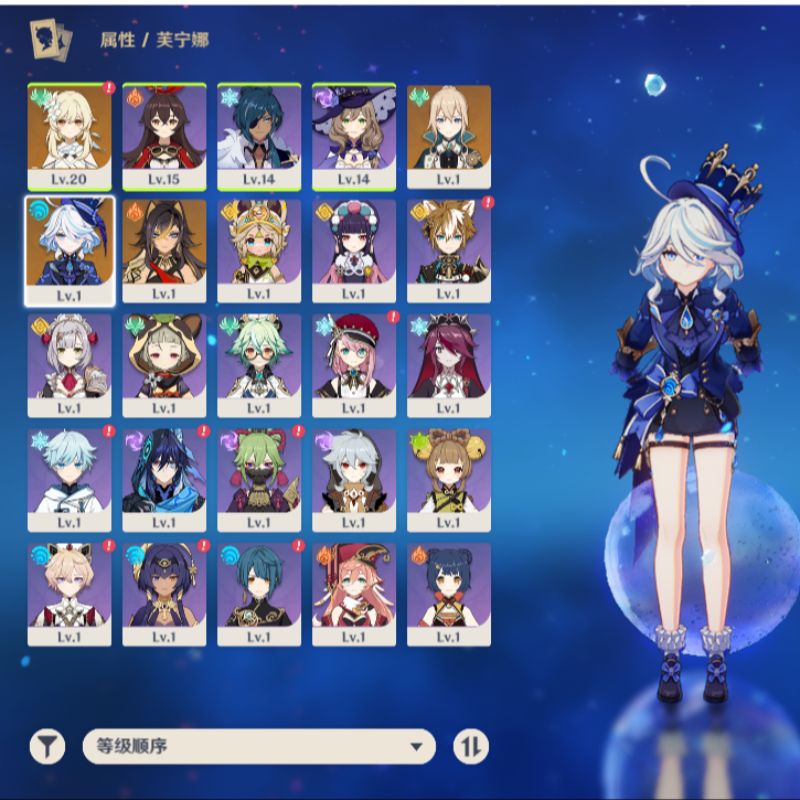 58级/29黄/男主/16个五星角色/8个五星武器0命芙宁娜,0命纳西妲,0命提纳