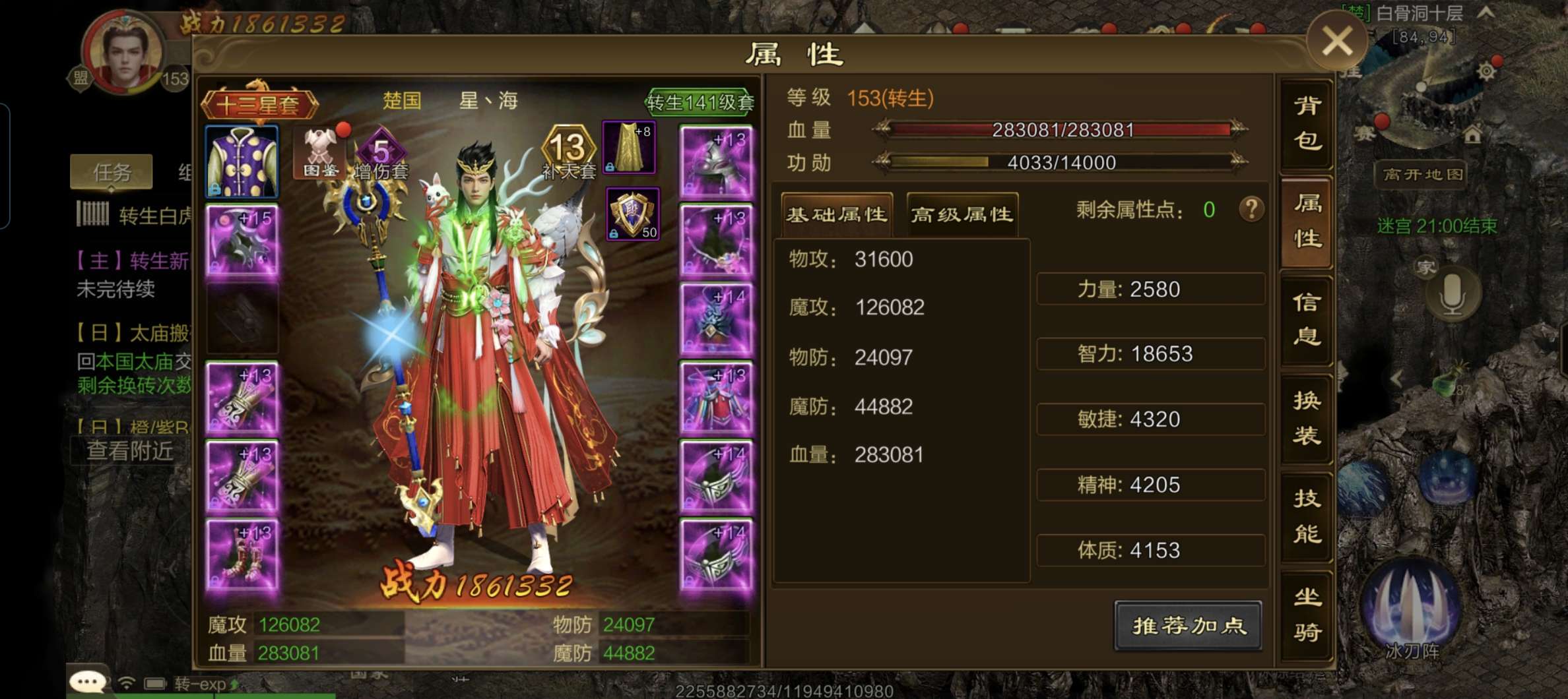 转生117级人12套,马11套,不加状态92万战力加状态100万以上,反射5套装,打架嘎嘎猛