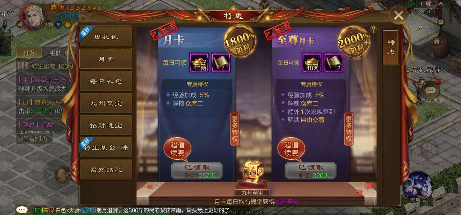 公测2区,年卡双十二,终极150神兽坐骑
