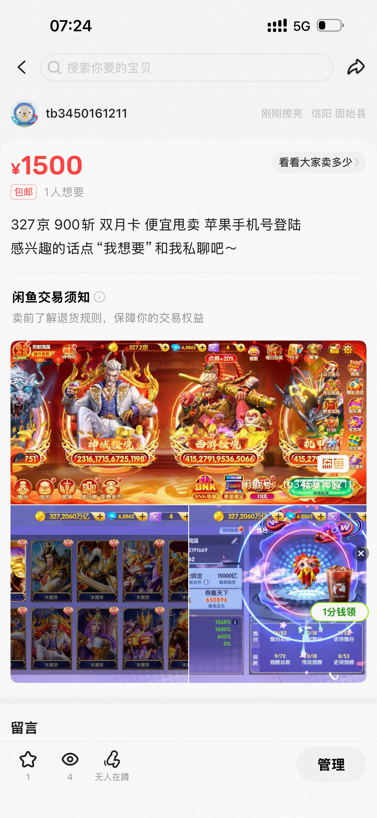 鱼乐达人小米版本精品号1140京卖断,天王九尾觉醒,2.5炮,8开头换绑一切,信誉可查,详情看图。