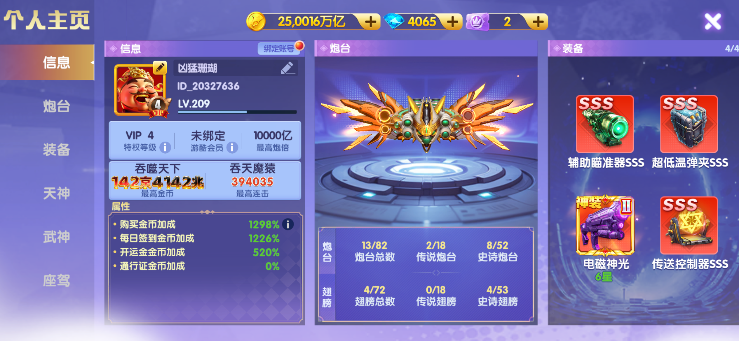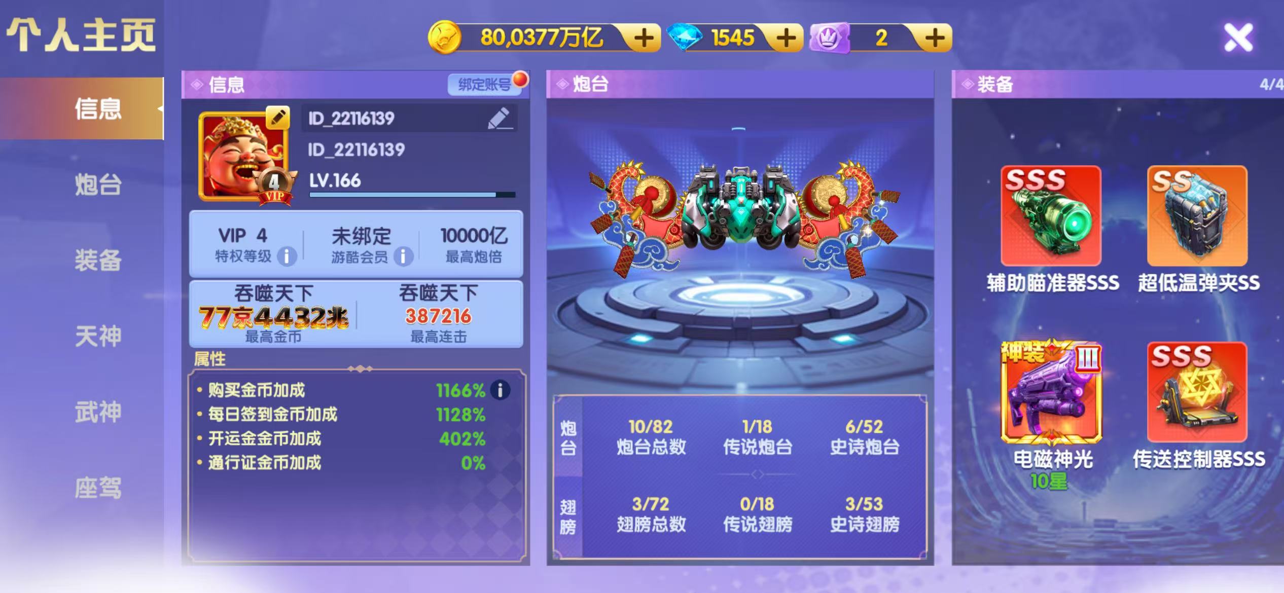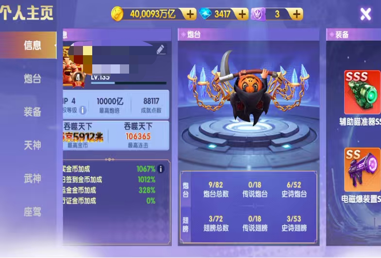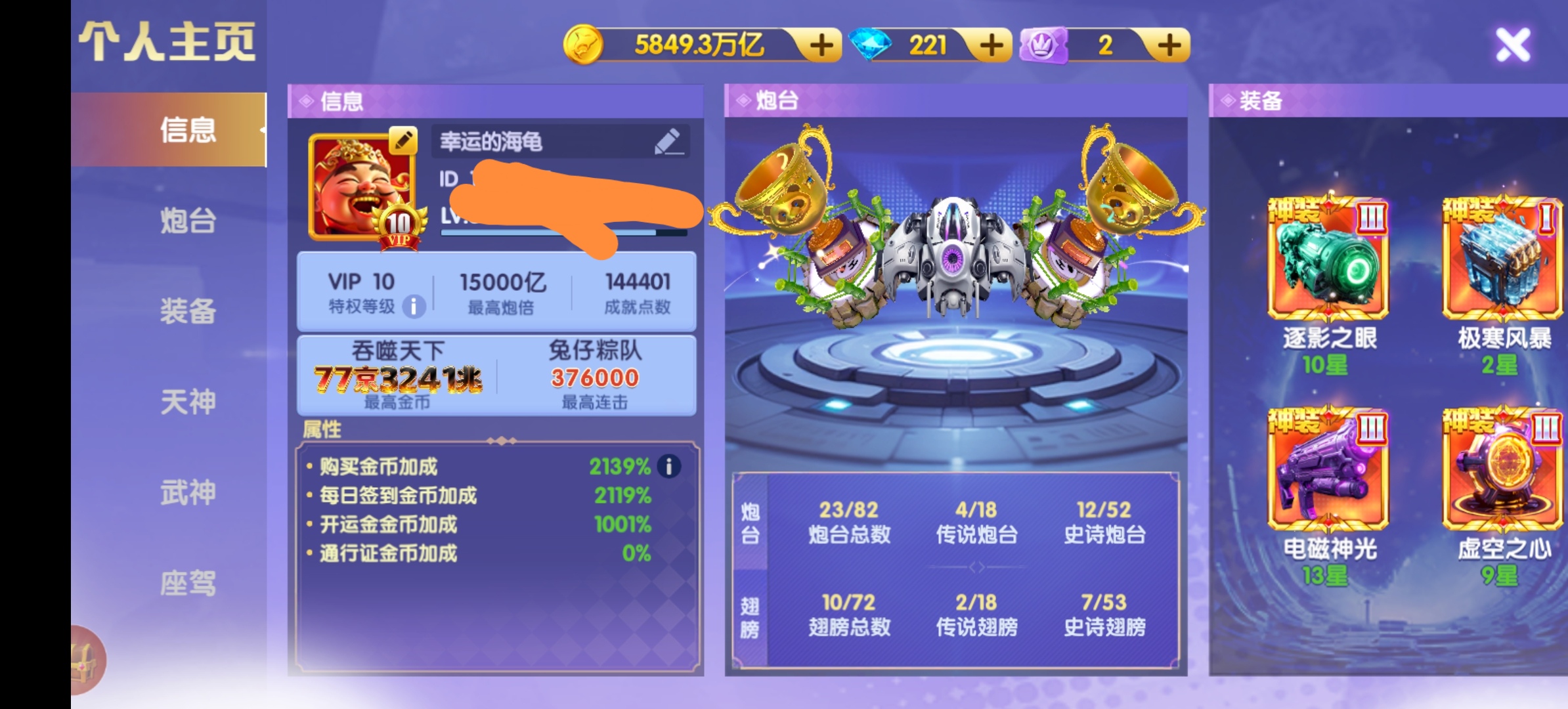 精品V10每日首叮:1.5万炮电13星+天神545洪荒三西游羁绊三福+武神1800连斩+双座驾,8开
