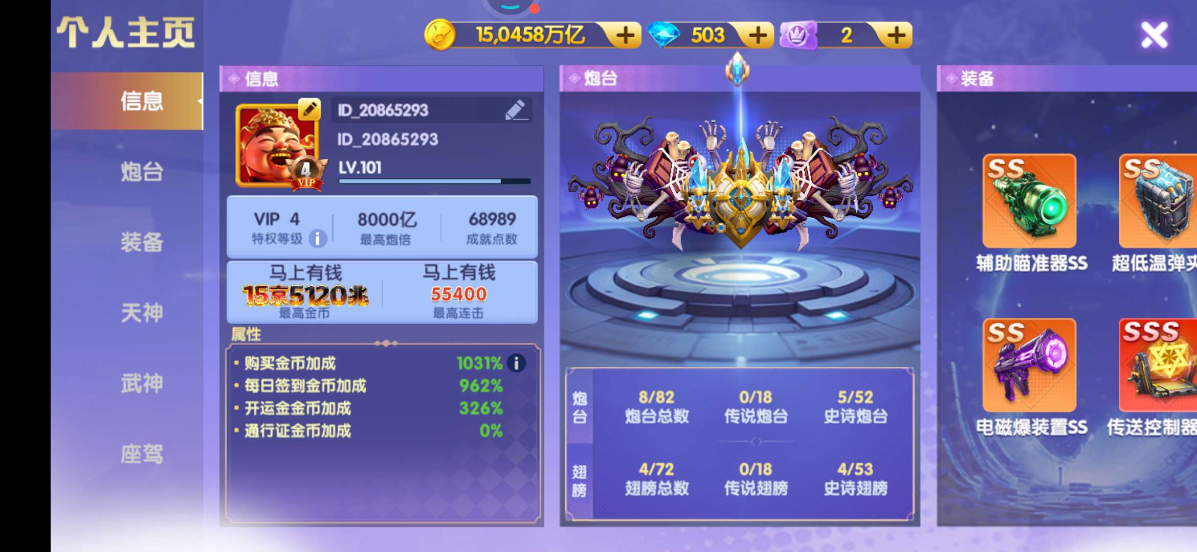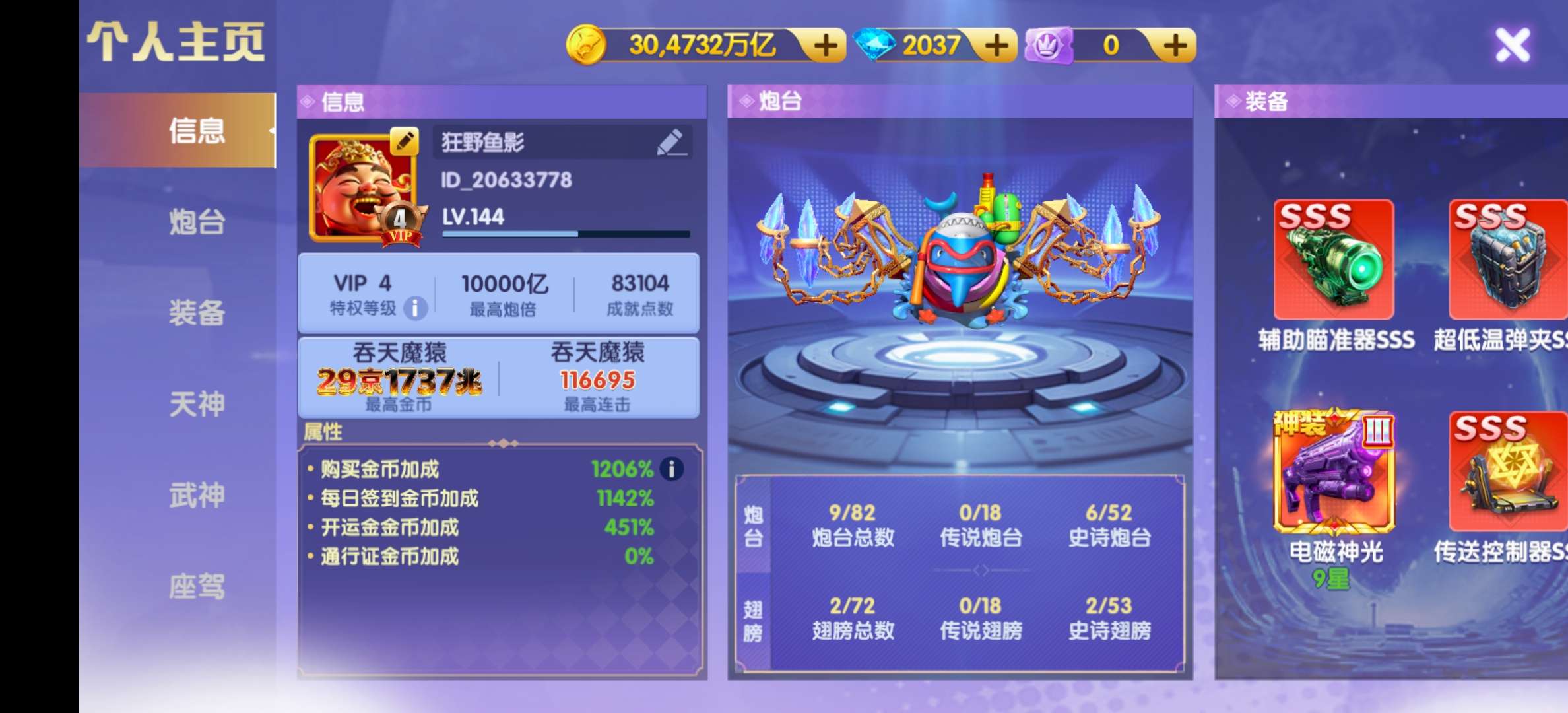 精品1.5万炮:160京全神电10星+天神4200洪荒三西游羁绊+武神1500连斩+双座驾,8开买断