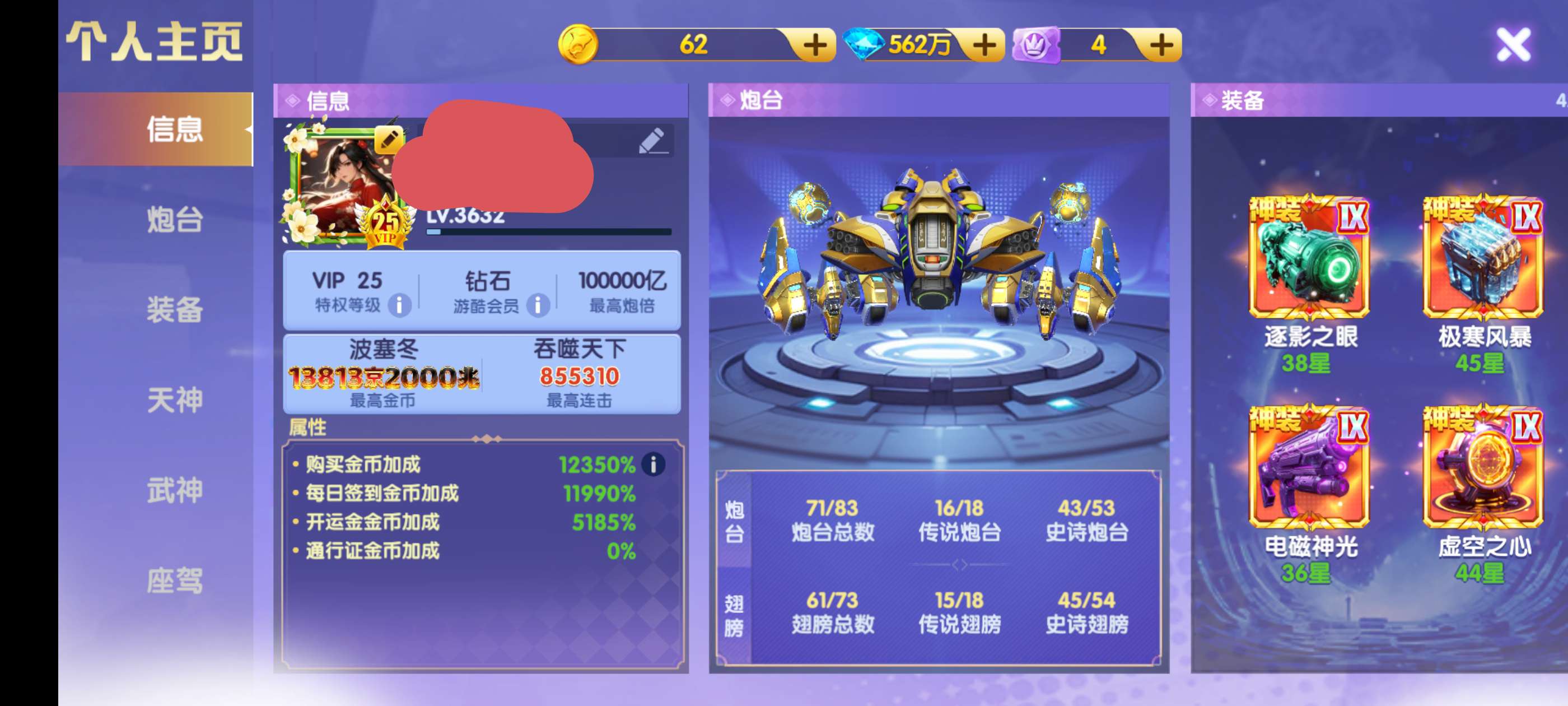 小米版买断号,741京,2万炮,电磁神装13星,黑炮6万,限时洪荒x3,武神900连击!