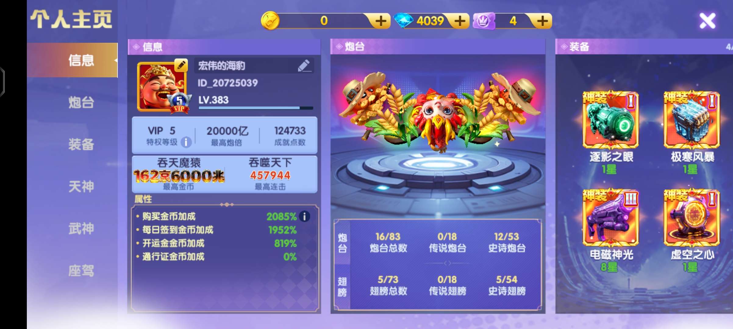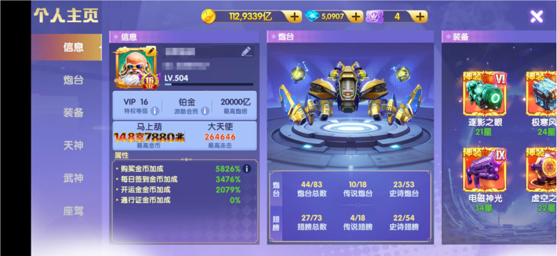 2219+49星共鸣1800连击神装2万炮多三星武神便宜出