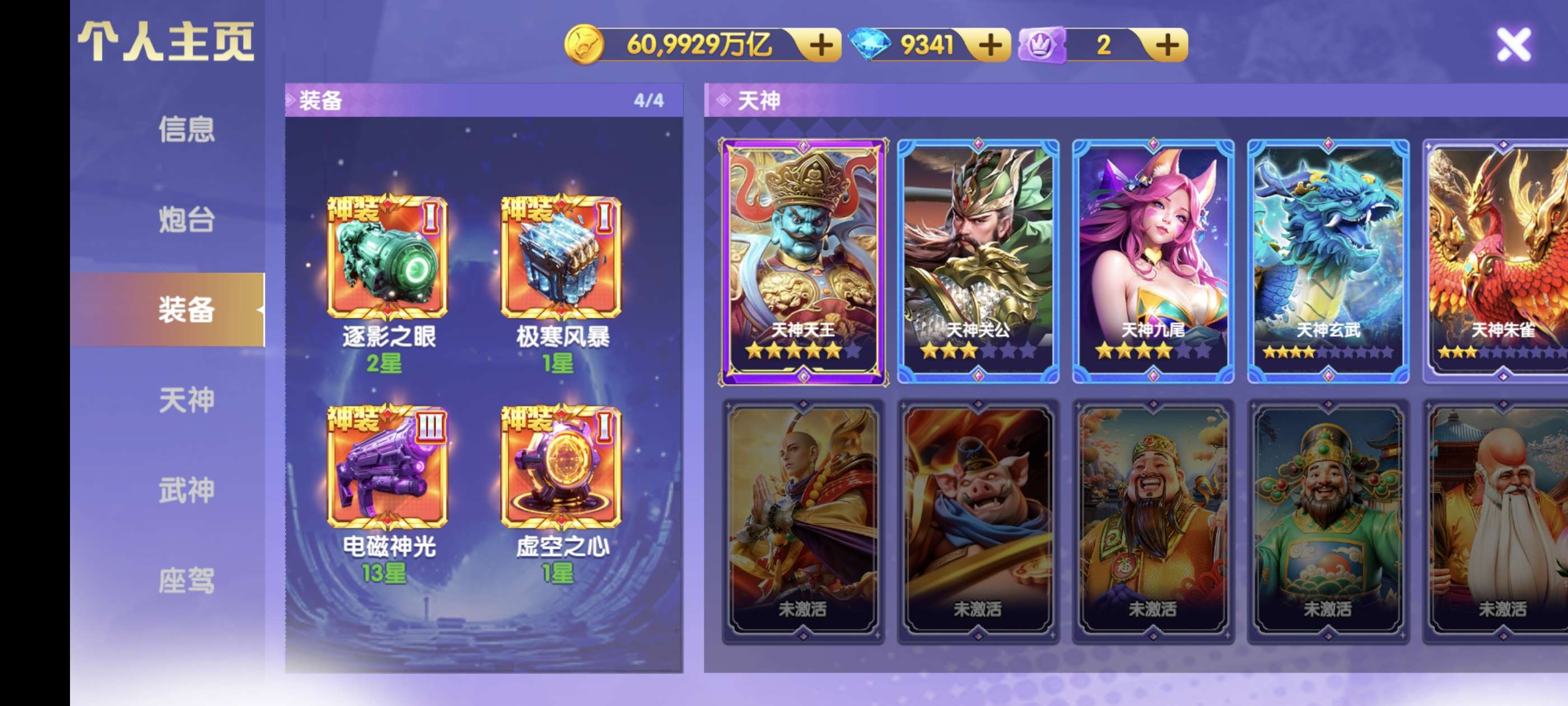 新 Q 破产号-资源充足,天王狐狸觉醒有月卡,武神多多