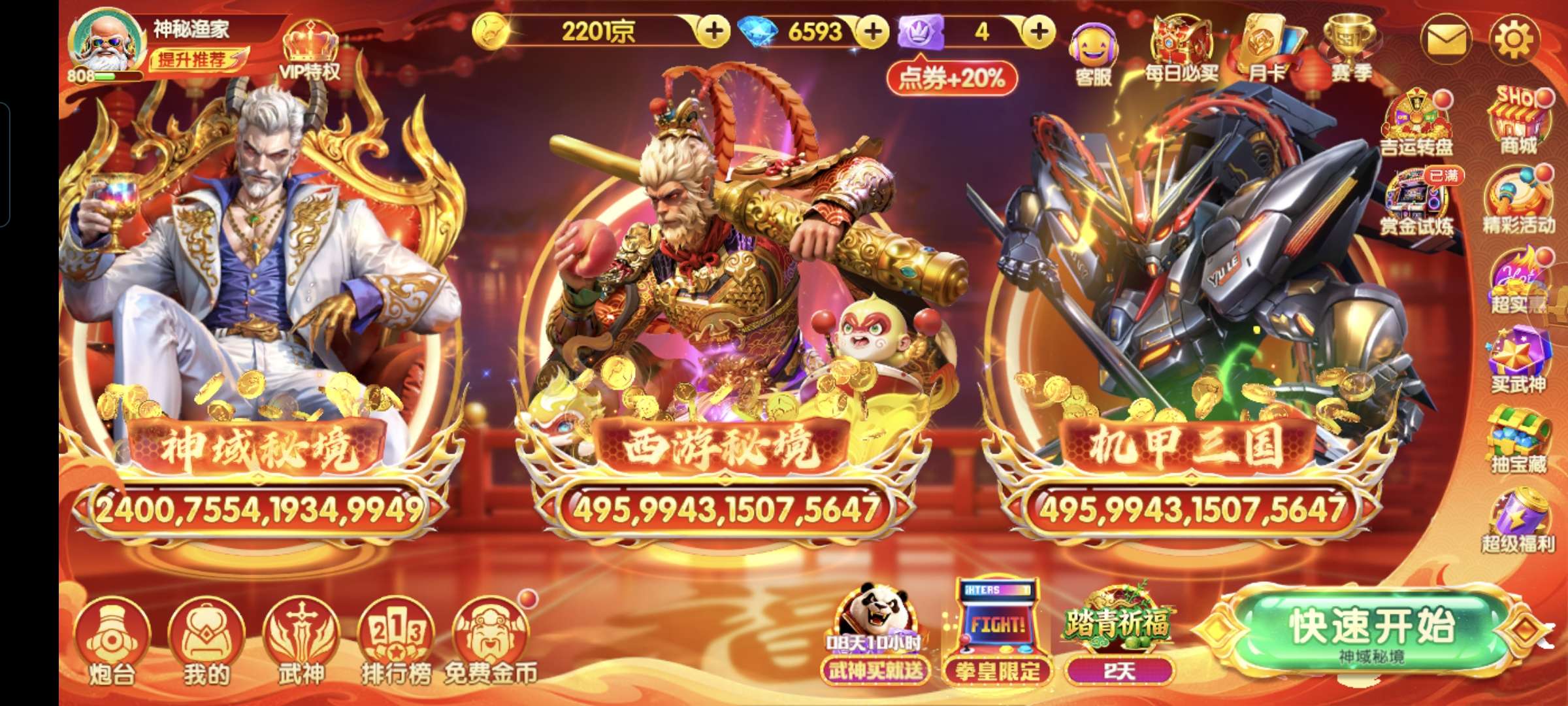 v12顶配神电 全觉醒天神 四级洪荒 西游三星羁绊 2100连击 5个座驾