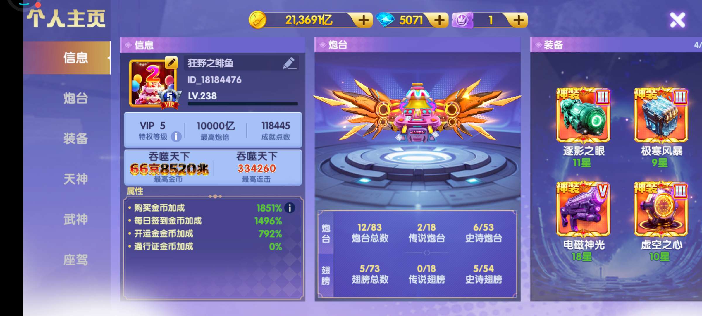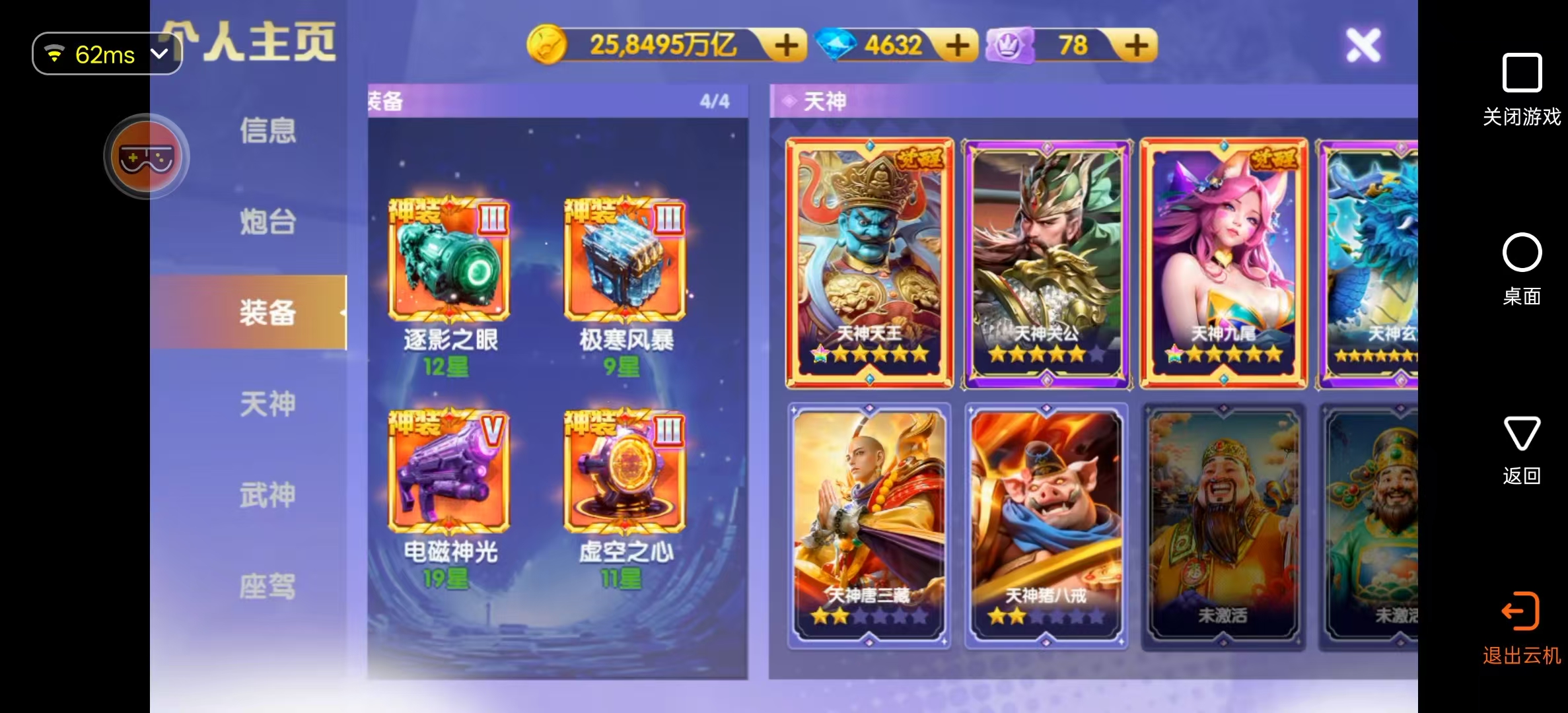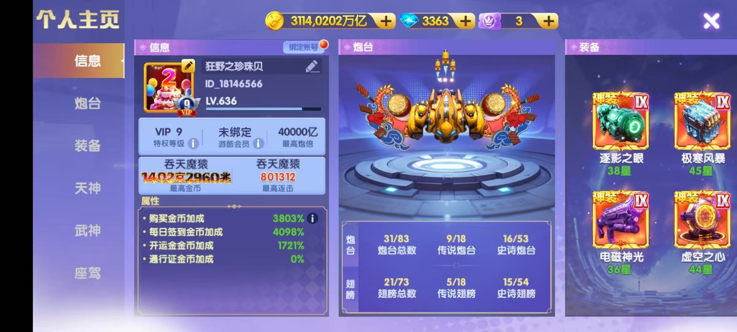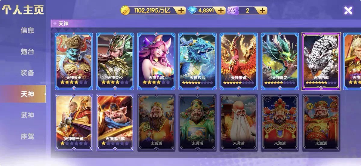 小米万炮破产号。4神3荒。天神觉醒天王狐狸。详情看图