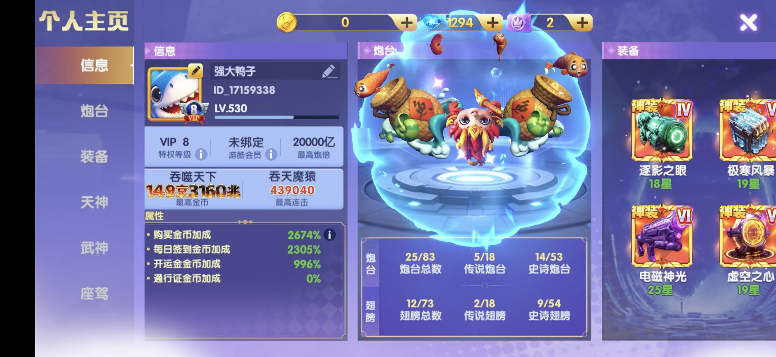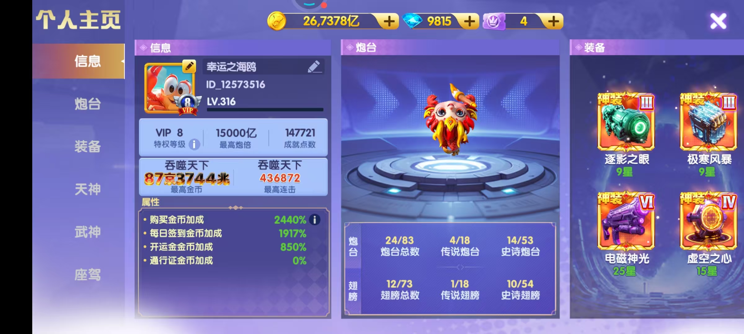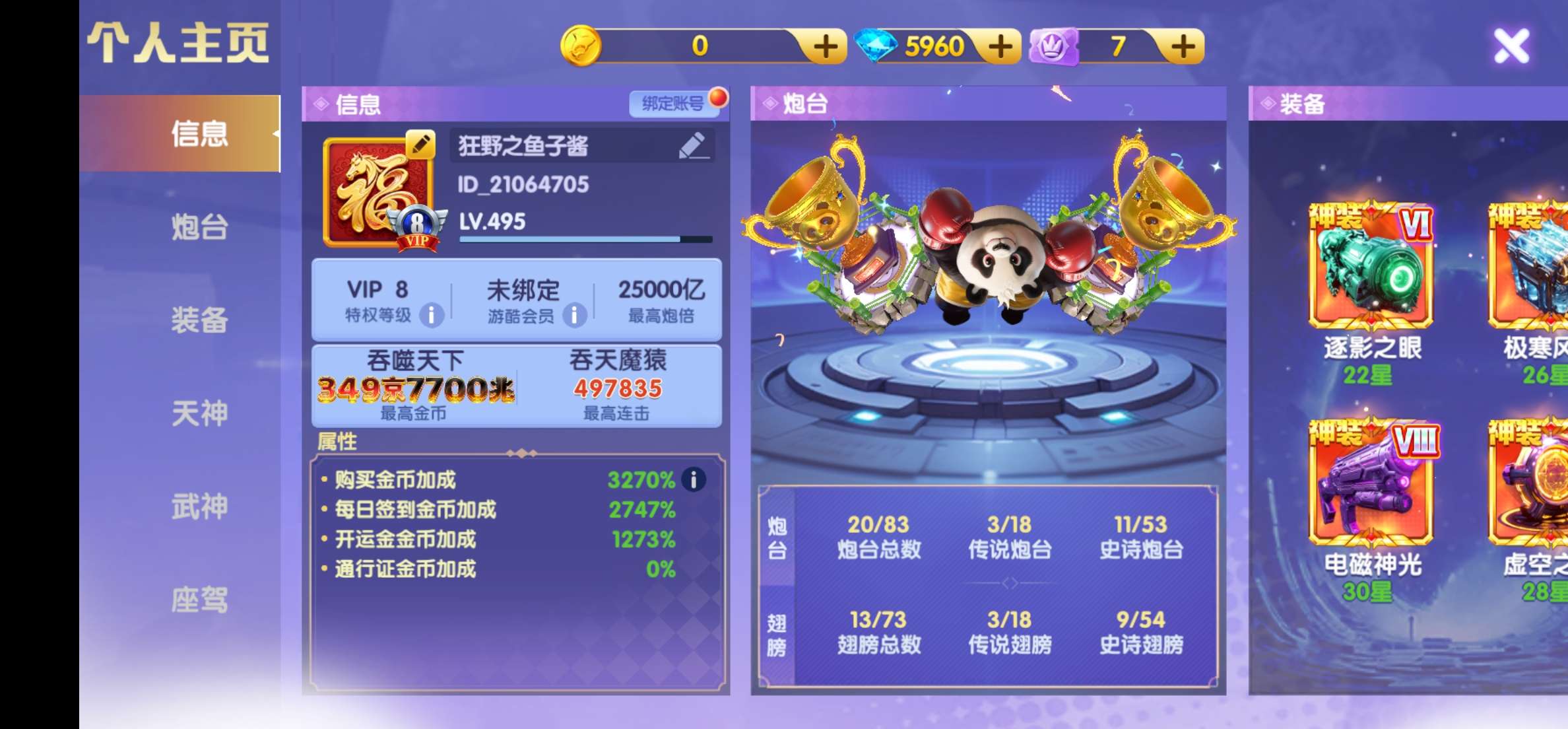 小米万炮破产号。4神3荒。天神觉醒天王狐狸。详情看图