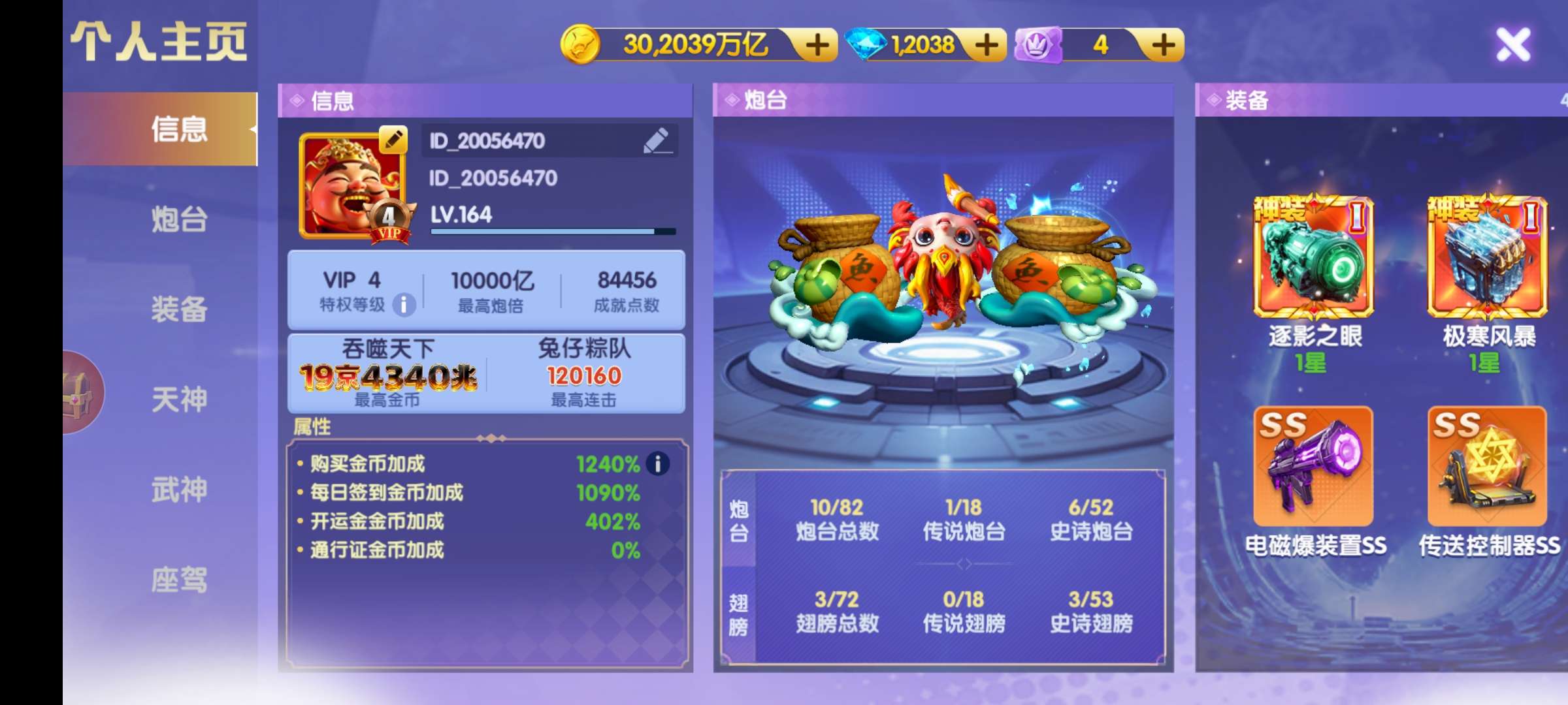 小米 110京神电 万5炮 天王狐狸4⭐️三级洪荒 差一个武神连斩1500 8开任意修改