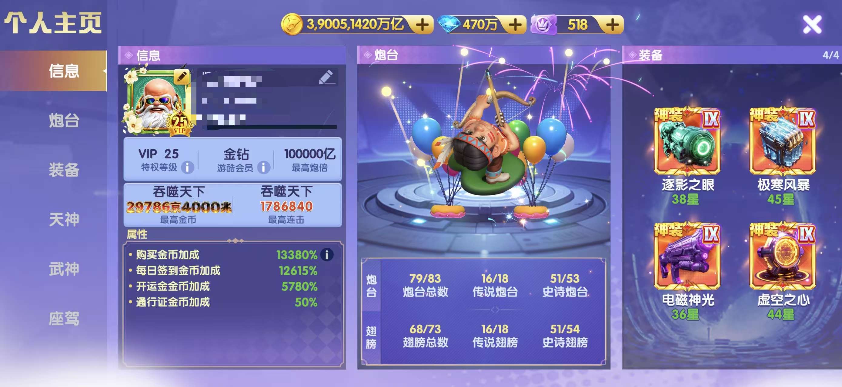v8 1000京 16武神 13万炮 神力8100 武神90级 2套羁绊 8开正常无绑