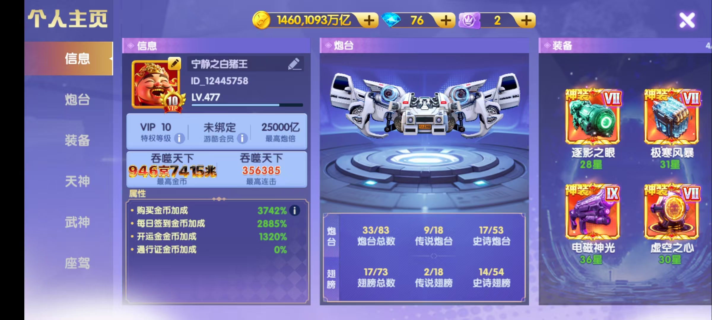 v12破产号,25000基础炮,3万加倍卡多多,有武神羁绊,高配置,细节看图,买断 微信登陆 赠送微信 不议价