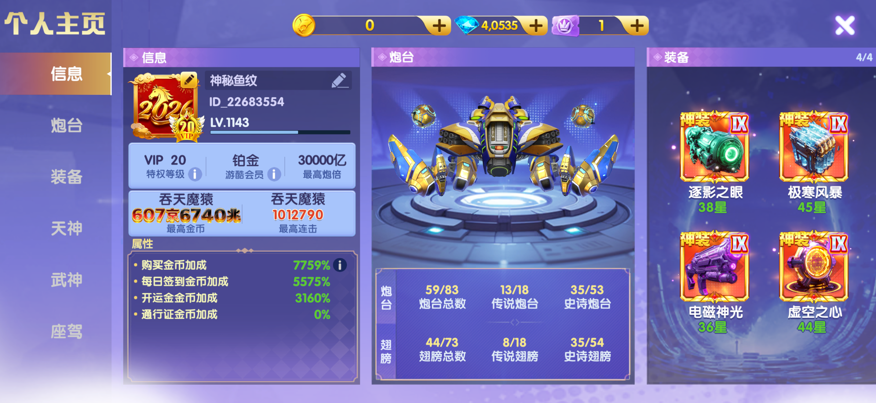 V8 600京 11万炮 16武神 8100天神 武神88级 2套武神羁绊 买断 不要代售