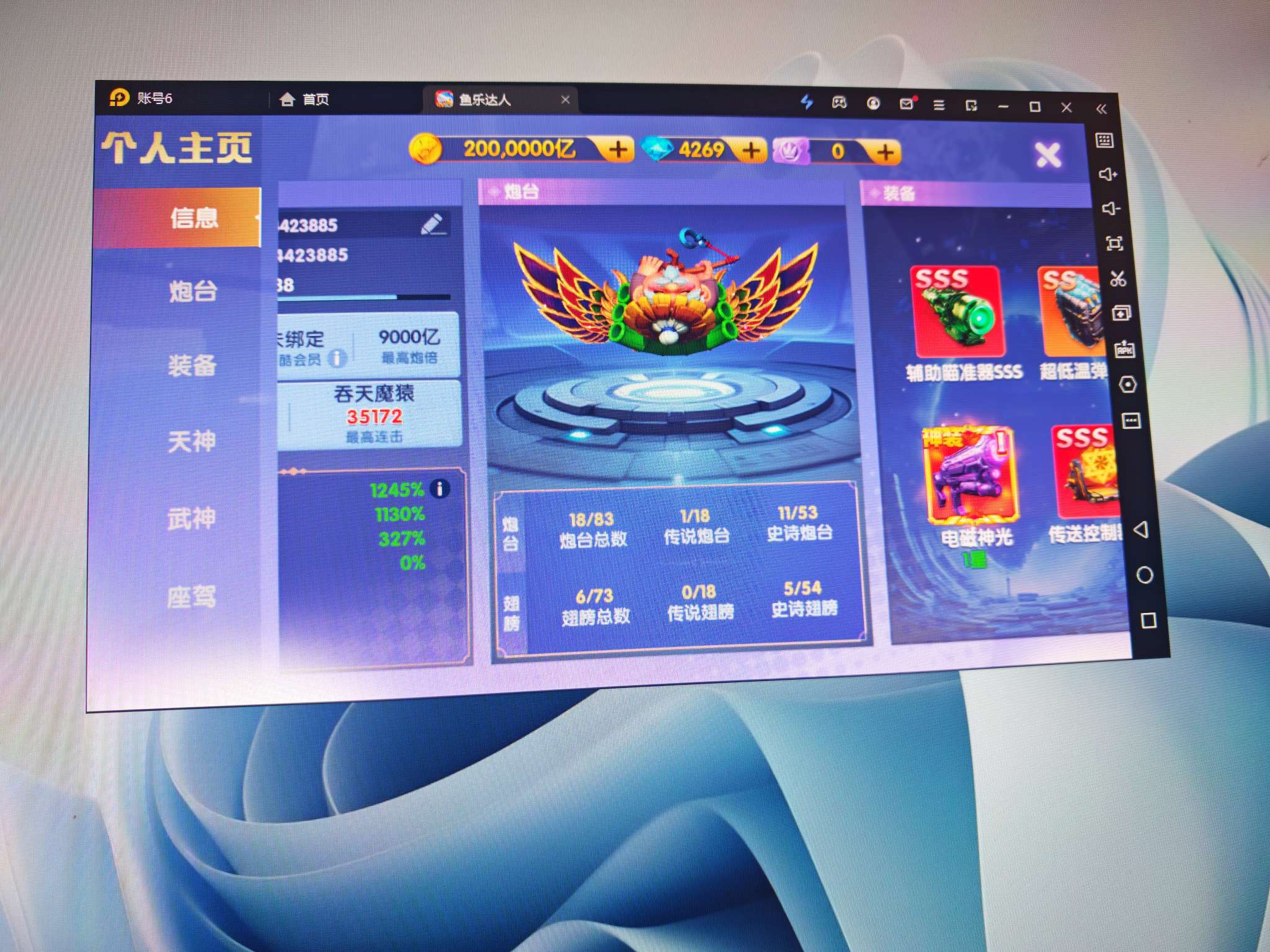 鱼乐达人小米版买断号,v6,197京,万炮 神电 洪荒3级,天神上班 武神300连击, 具体看图