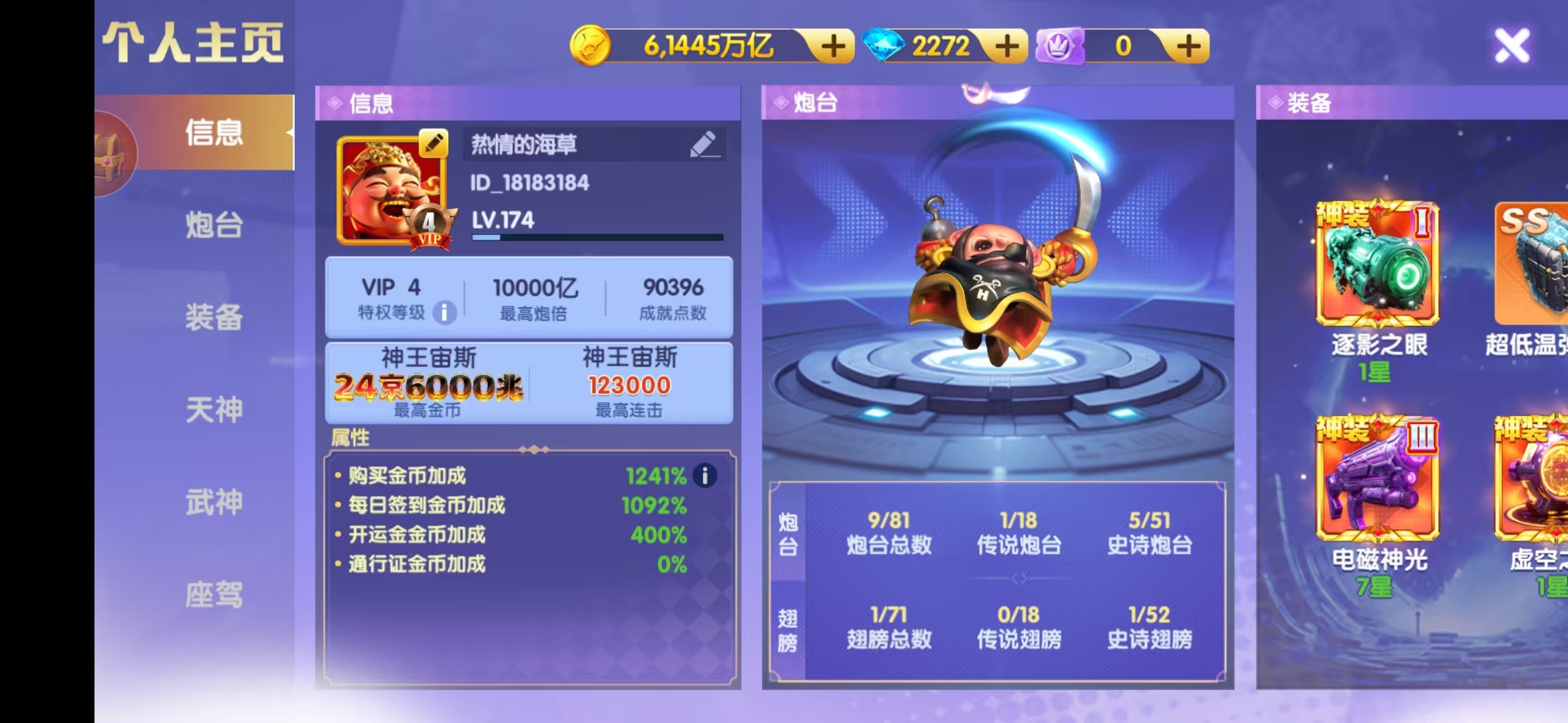 鱼乐达人 新号买断1.4京7000亿炮 吞首杀,有武神 320盲盒币小米安卓机通用,能换绑,商家