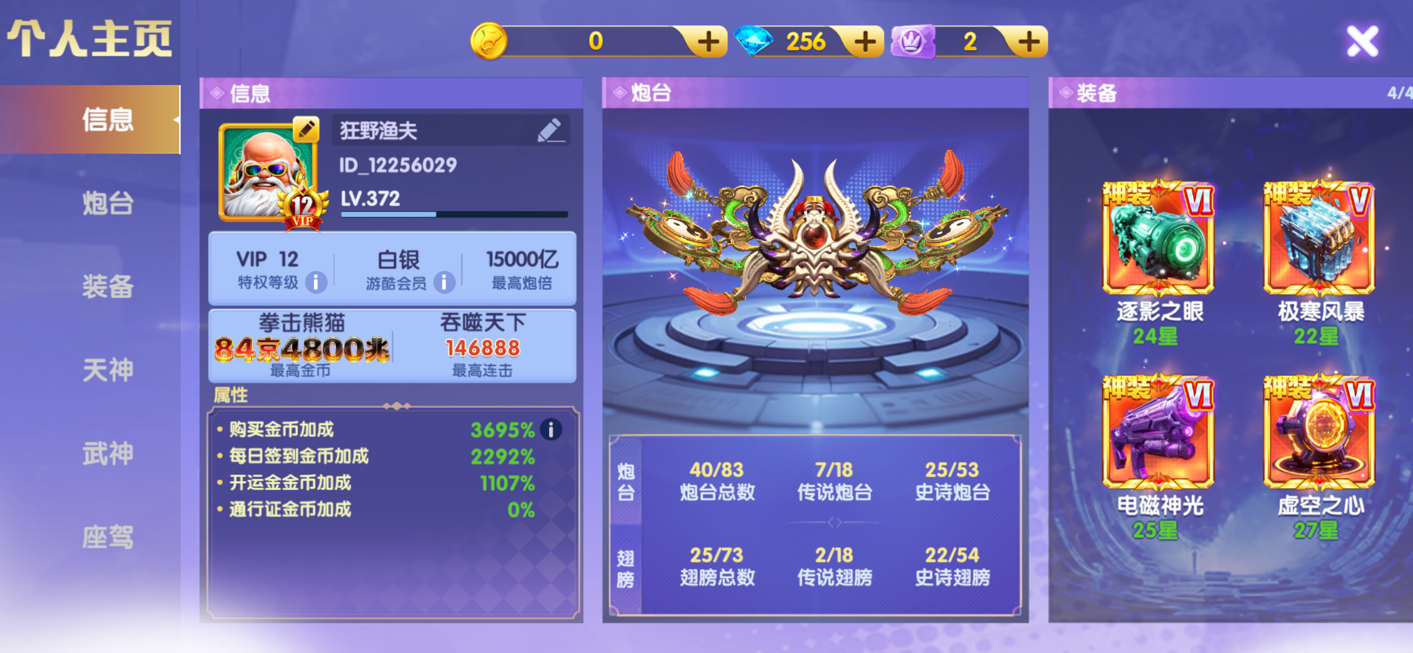 V12,基础炮30000,加成3300,神电炮满