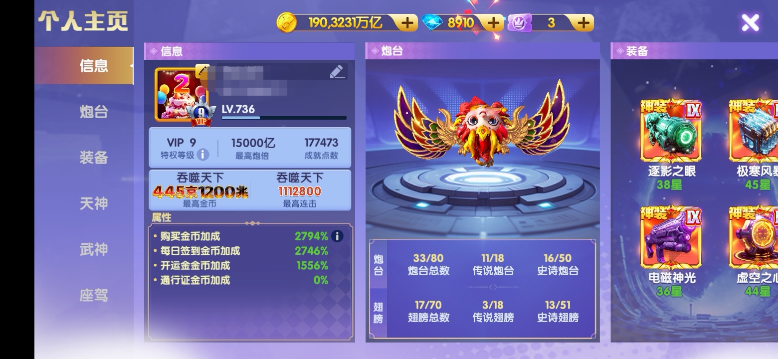 米端高配纯玩打回,1.5炮,天神神兽全部2觉,神装满可充能磁炮,非卖断