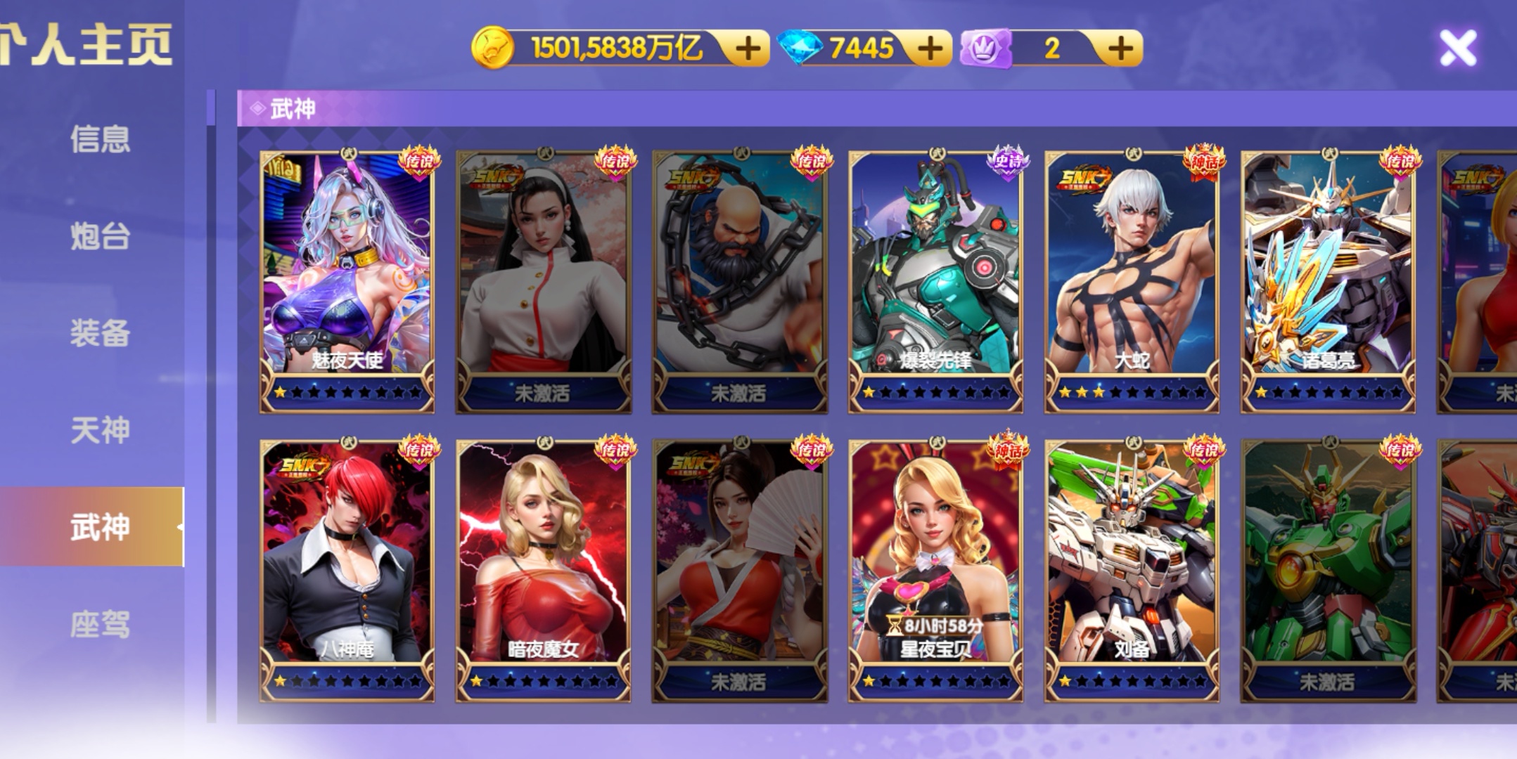 小米买断,1.5万炮 8⭐️神电 全神装 3级洪荒 1⭐️觉醒天王 4⭐️关羽狐狸 35级武神