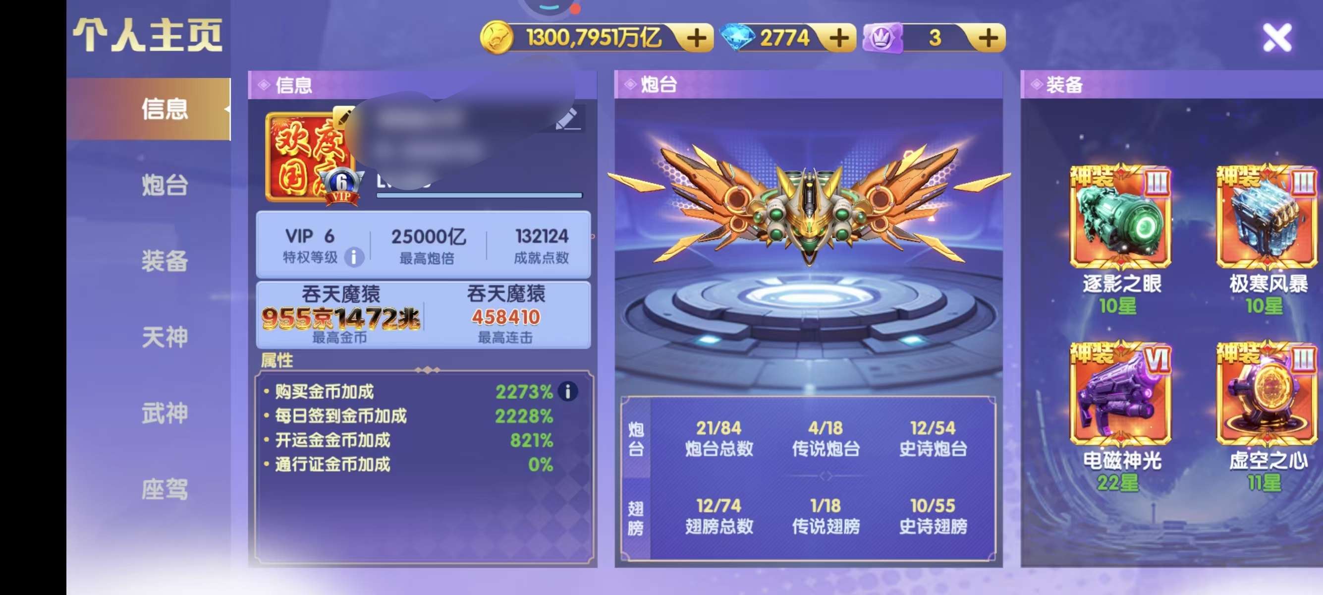 小米买断 1.5万炮 13⭐️神电12⭐️召唤3级洪荒 2⭐️觉醒天王 2个座驾 51武神